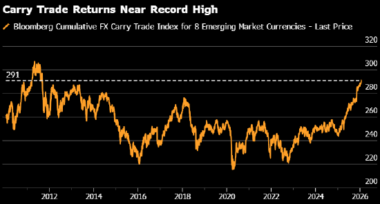 2026年伊始,卖出美元以买入新兴市场货币的投资者收获颇丰,顶级银行的策略师预计,此类策略在去年大涨18%之后,仍有向上空间。