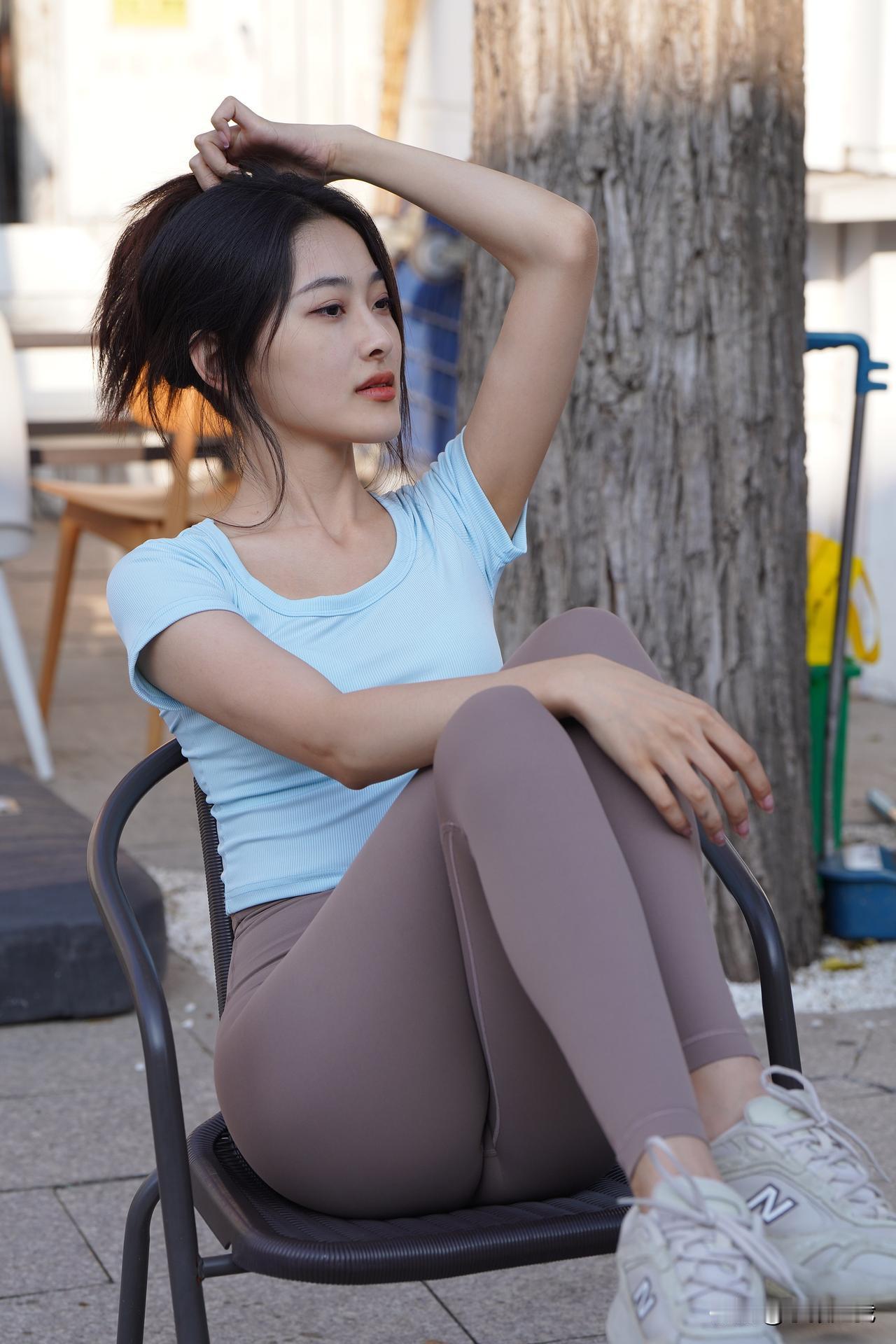 💙 日常出行穿搭 浅蓝短T配裸色瑜伽裤,把舒适和好看焊在身上。 穿过老巷与街头,阳光落在发梢,风掠过衣摆, 自在就是最好的状态。时髦精穿搭秘籍