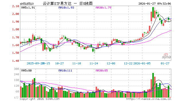 云计算ETF易方达(516510)业绩比较基准为中证云计算与大数据主题指数收益率,管理人为易方达基金管理有限公司,基金经理为张湛,成立(2021-03-29)以来回报为91.35%,近一个月回报为14.92%。