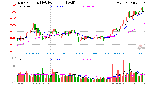 科创新材料ETF(588010)业绩比较基准为上证科创板新材料指数收益率,管理人为博时基金管理有限公司,基金经理为唐屹兵,成立(2022-09-30)以来回报为-0.75%,近一个月回报为14.75%。