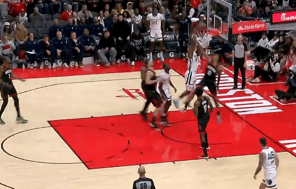 比赛的第二节,GG-杰克逊隔扣史密斯,灰熊打出一波10-2打停火箭。