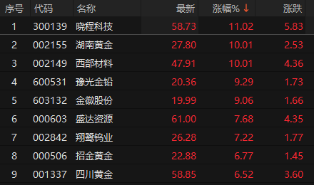 有色金属板块探底回升 湖南黄金2连板