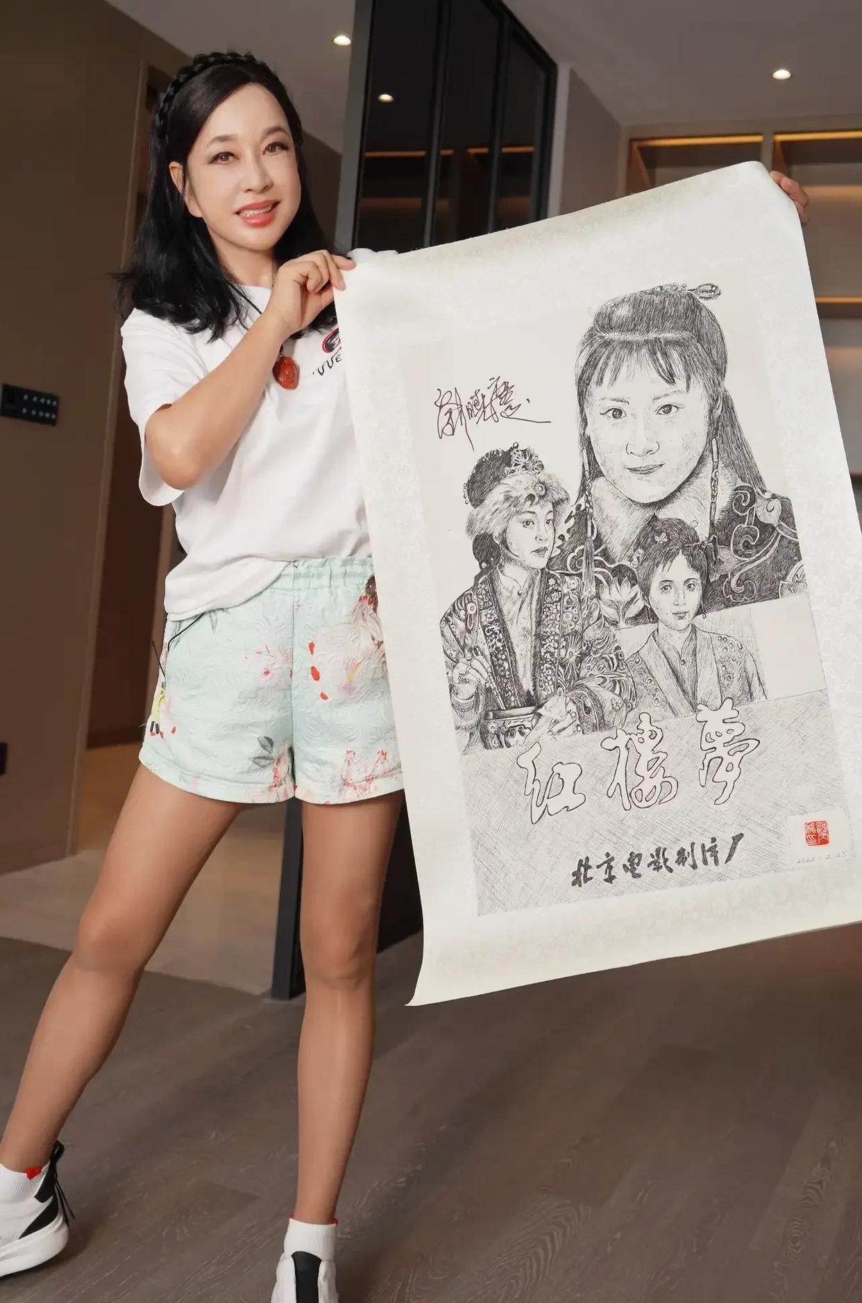 刘晓庆真的是多才多艺呢,自己画自己啊,这绘画水平可不低吧,最起码形似神似。咱不是