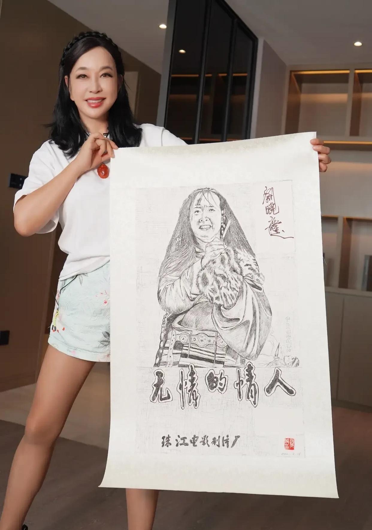 刘晓庆真的是多才多艺呢,自己画自己啊,这绘画水平可不低吧,最起码形似神似。咱不是专业的,看看这画作值多少钱? 刘晓庆