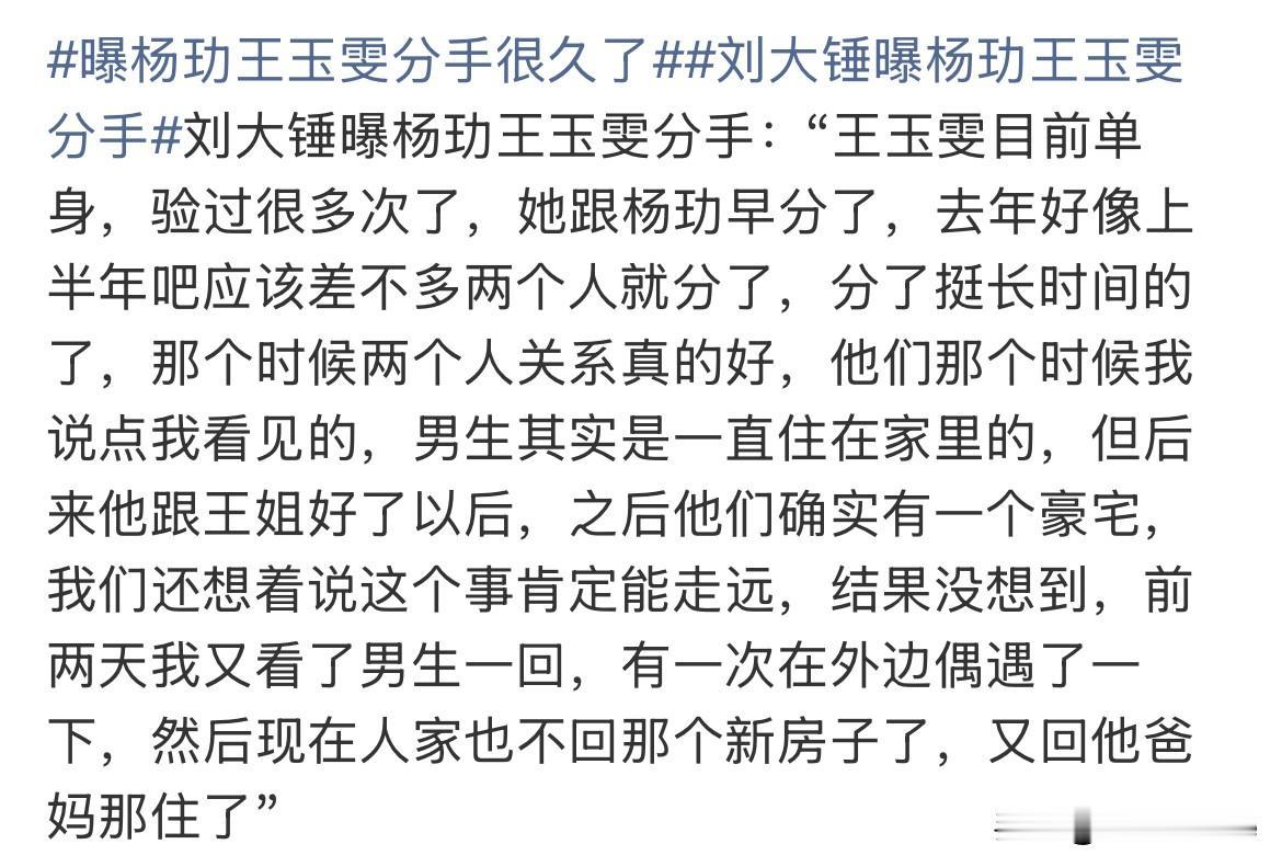 1月27日,娱记分享王玉雯感情状况,明确指出王玉雯与杨玏去年上半年就已和平分手