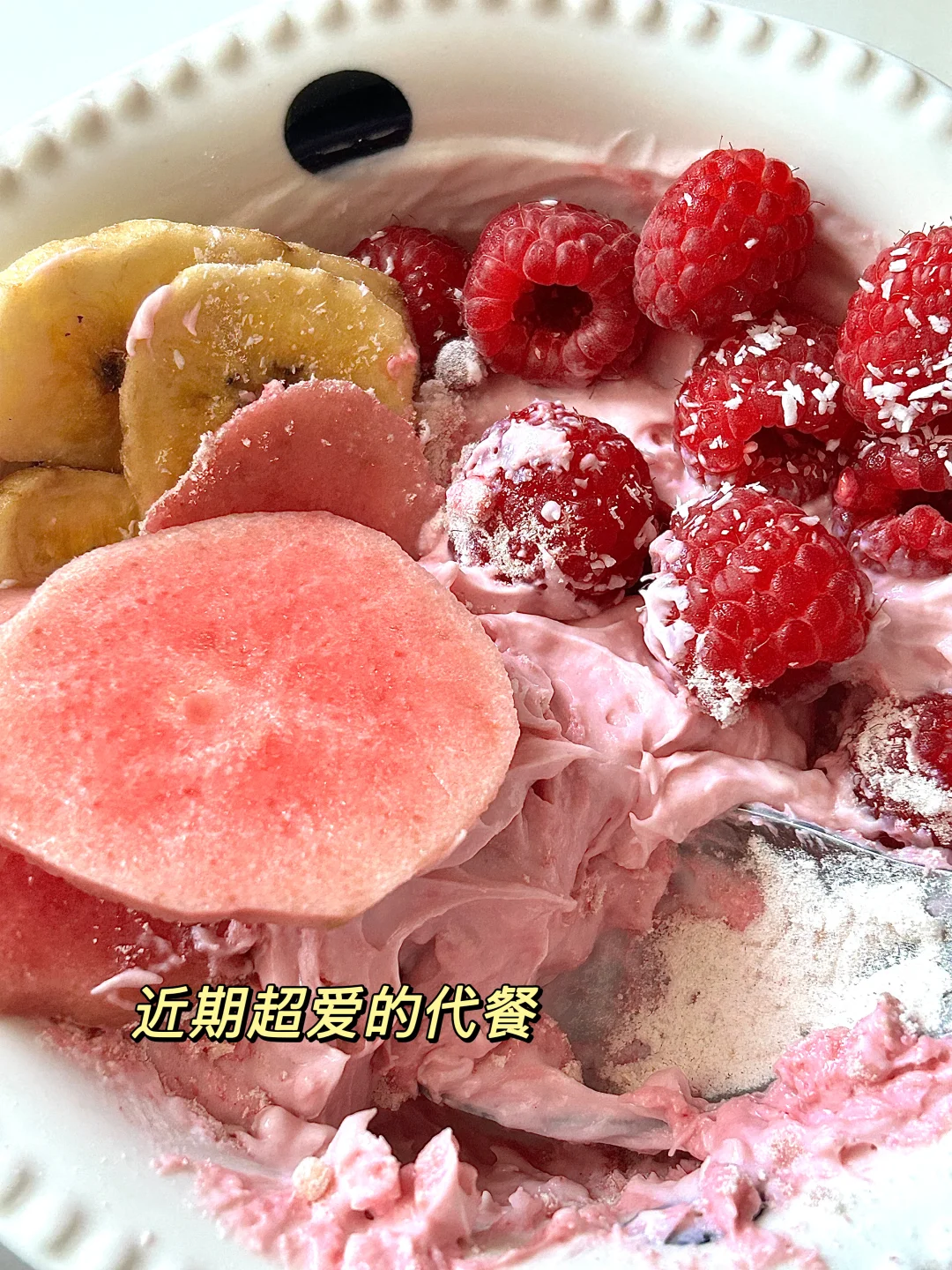 平时我更喜欢加酸奶搭配上水果一起吃,味道感觉更醇厚美味😋