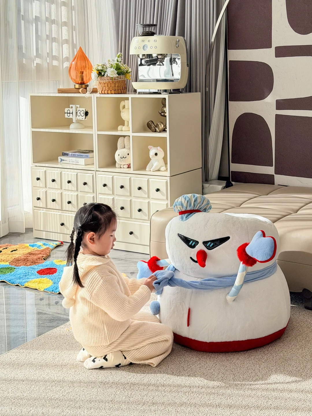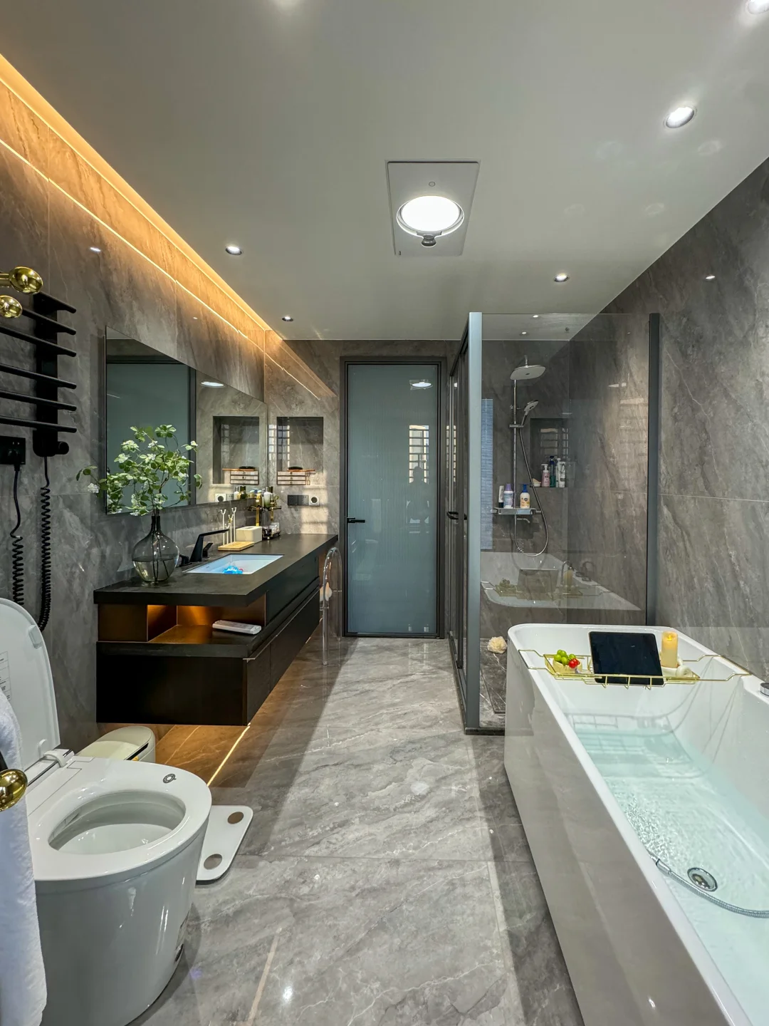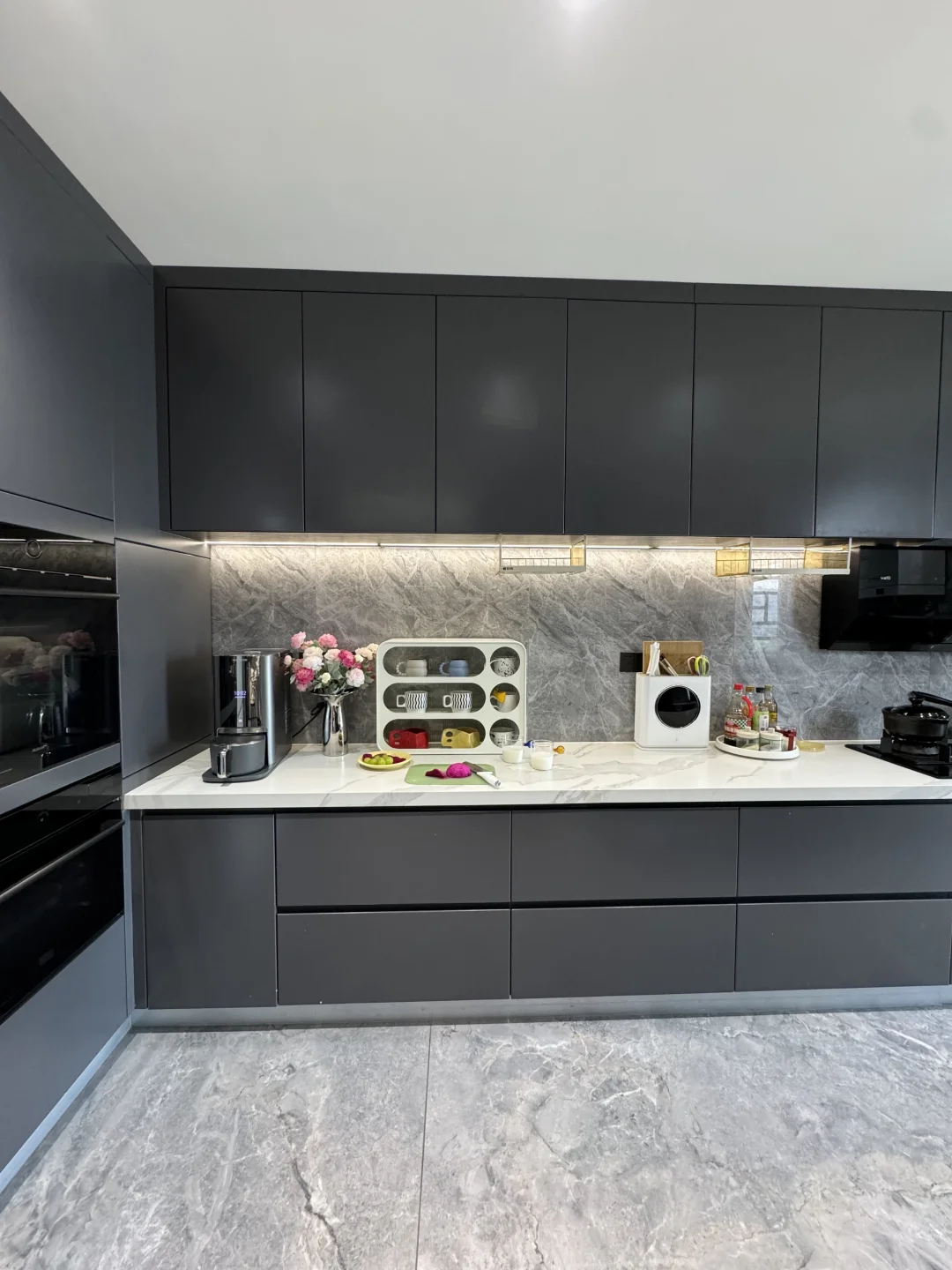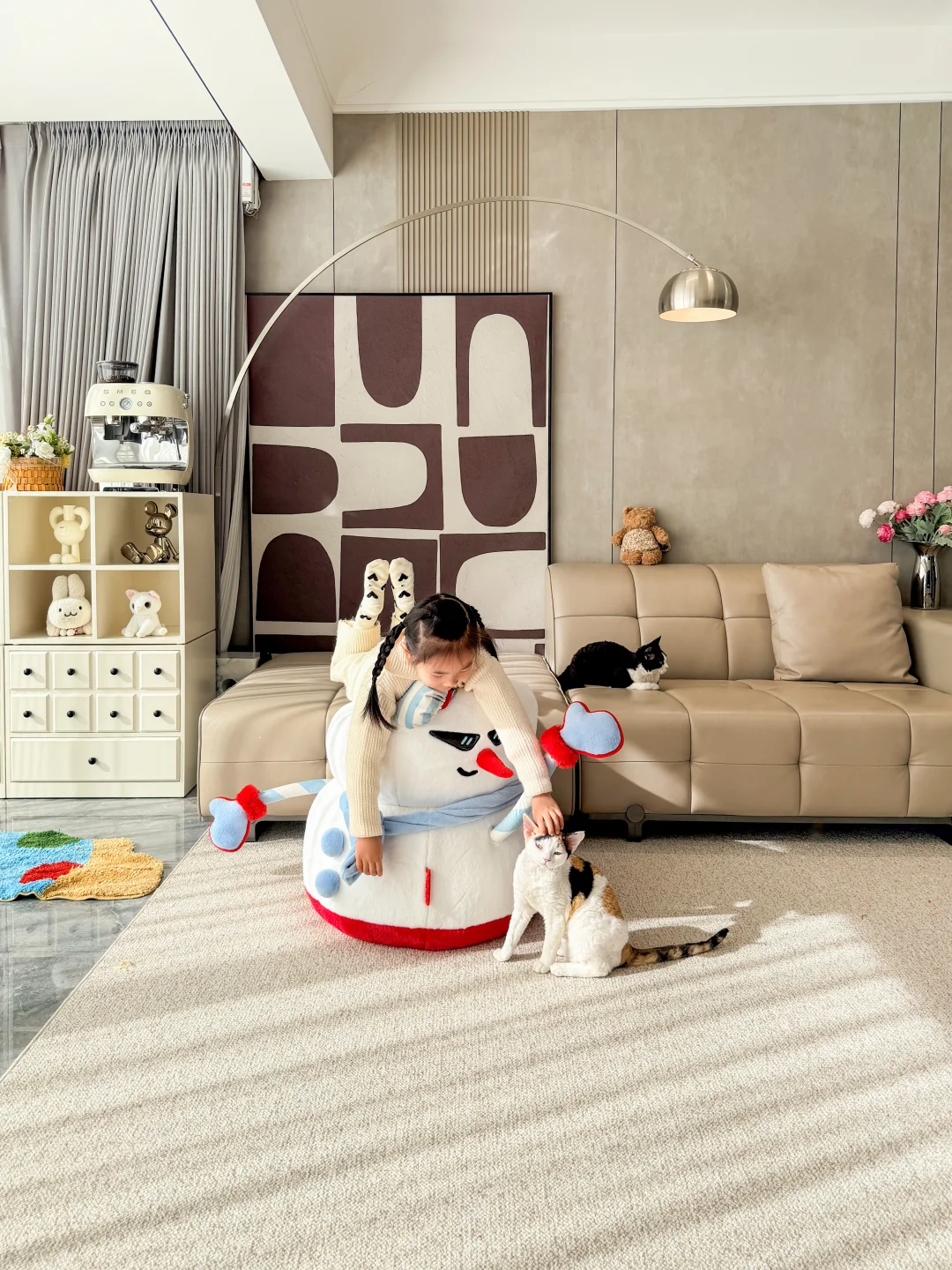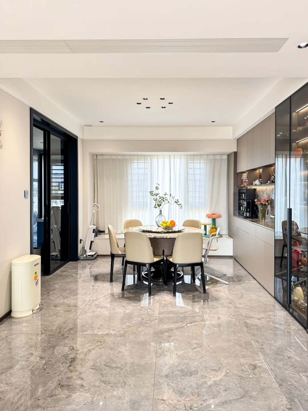 被邻居挑剩下的七上八下的“八楼” 便宜了30万,被我捡漏买下了 住进来真的太舒服了 每天回到家就被窗外的树治愈了,即使是寒冬 外面窗景好美啊~ 楼层不高、没有压迫感 楼层不矮、坐在软软的沙发上刚好可以看得见外面的景色 没想到发意外收获了很多朋友的喜欢 很多朋友私信我问一些装修问题和设计 下面分享一些我的装修经验: 🏘️关于房子 建面180平,套内140平四室两厅三卫 两个阳台: 主阳台9m*1.5m、生活阳台5m*1.5m 客厅 长6.9m,宽5.1m 餐厅 长3.8m,宽4m 厨房 长5.9m,宽2.7m 儿童房长4.3m,宽3.3m 主卧 长5.8m,宽4.2m 主卫 长3.3m,宽2.75m 📚关于装修设计 现代简约风,硬装简约,配色以黑白灰为主 🌟全屋门洞加高,一门到顶更显层高,不压抑 🌟电视全嵌入,没有电线露出更整洁 🌟满墙墙餐边柜,收纳空间足 🌟厨房、卫生间选择浅灰色,耐脏,还不显暗 🌟阳台包进客厅,采光更好,空间显大 🌟硬装从简、软装搭配,后期地毯、抱枕可以增加氛围感,短毛绒地毯,好打理不藏灰 🏘️新春伊始,愿大家快乐每一天,都能拥有一个充满阳光和爱的小家