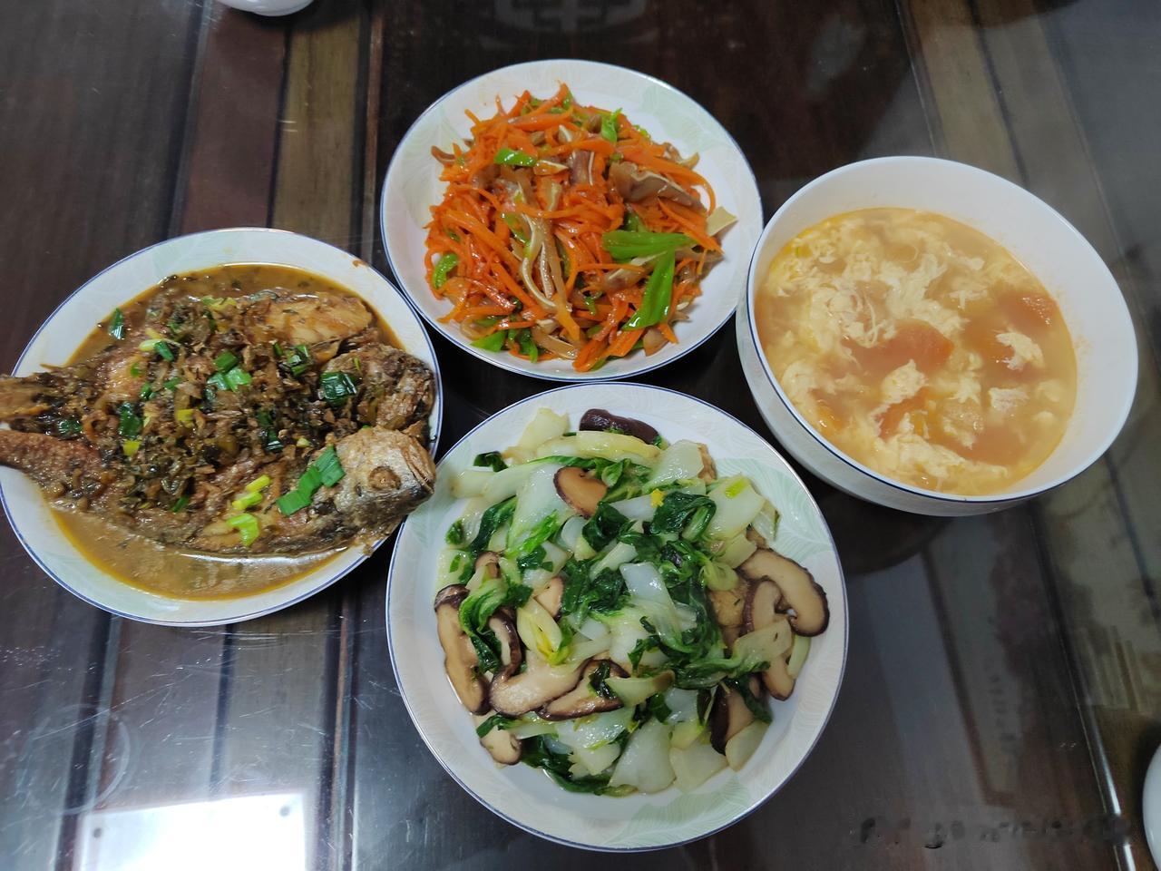 今天南京市天气阴到多云,气温最低0℃,最高7℃,气温微升但体感湿冷依旧。 今日早餐:昨天腊八节煮了一锅腊八粥,能吃好几天,把腊八粥放微波炉里加热一下,用不粘锅煎饺子,每人煮一个鸡蛋,小菜是萝卜干,还有昨天晚上剩的花菜,煎的饺子非常香,再喝点腊八粥很不错。 吃过早饭开车送老伴到社区老年活动中心练舞,而后我们一起去附近超市购物,买了黄花鱼、基尾虾、素菜等。中午在超市吃的快餐,两素一荤12元一份,两份快餐花了24元,有木耳炒鸡蛋、清炒西胡瓜、油爆虾、米饭、豆腐汤。 晚上3个人吃,三菜一汤,雪菜烧黄花鱼、胡萝卜炒猪耳、香菇青菜、西红柿蛋汤,主食是米饭。 简单的一日三餐,开开心心每一天!