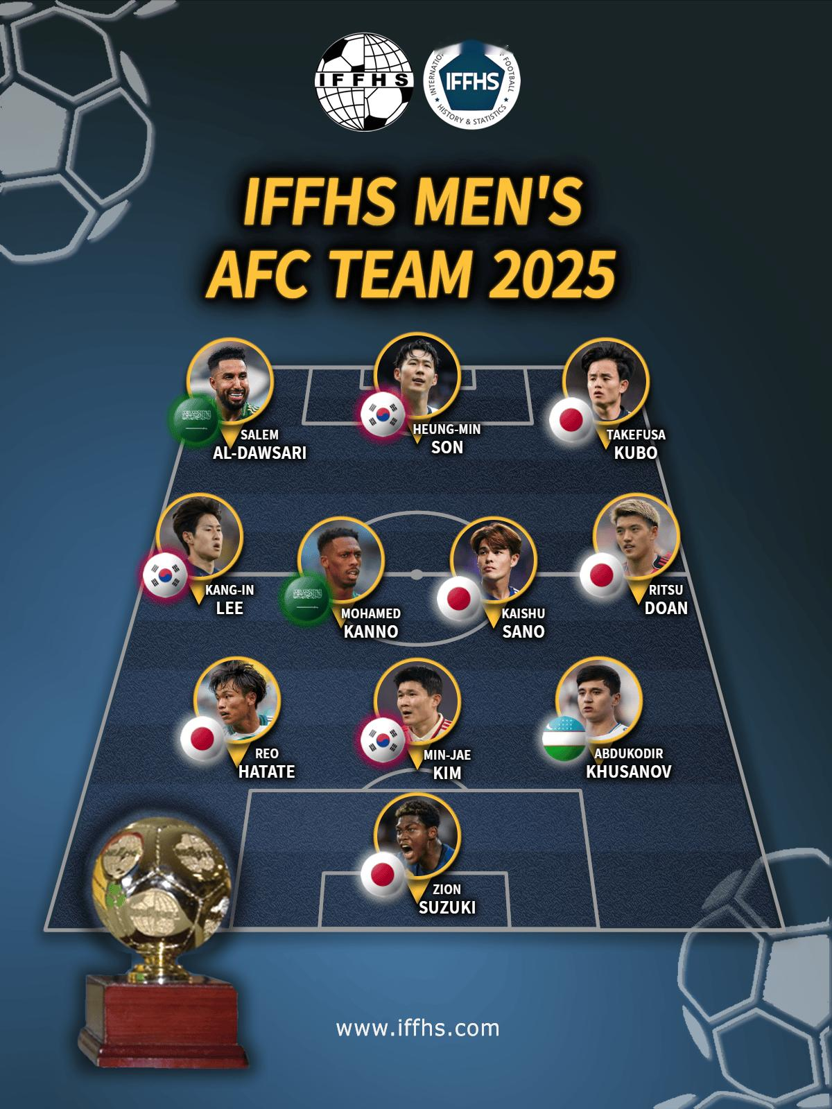 虎扑01月27日讯IFFHS(国际足球历史和统计联合会)在其官网公布了2025年亚足联年度最佳阵容。