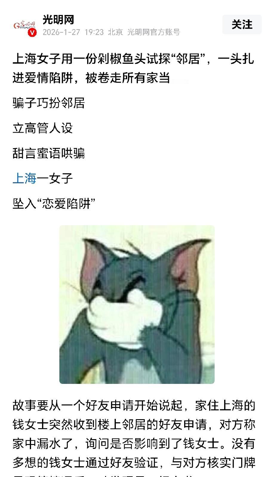 防不胜防!上海,男子以询问邻居家里漏水情况为由,添加40多岁的女子为好友,聊天过