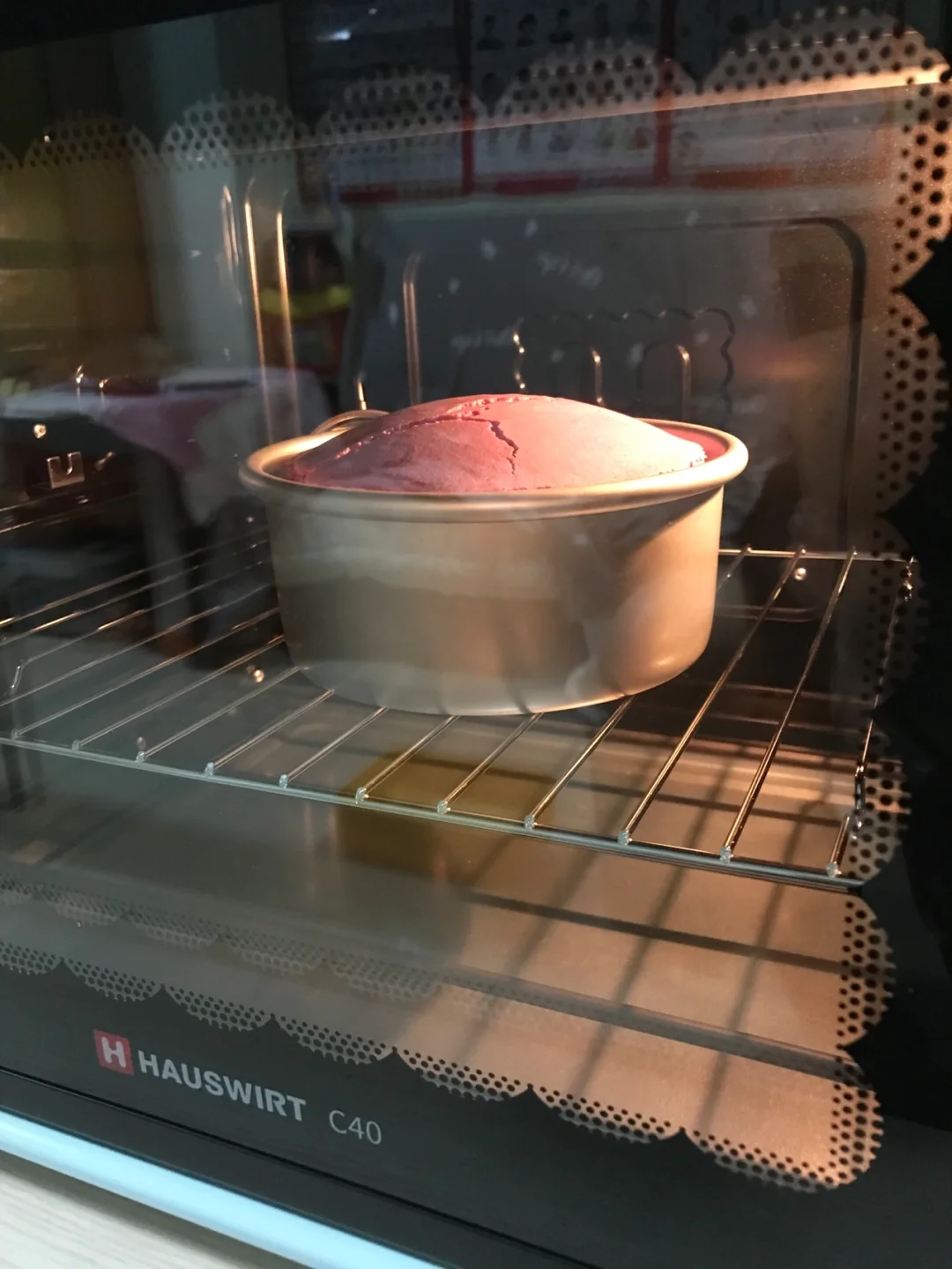 5️⃣将翻拌好的面糊倒入6寸戚风模具中,放入预热好的烤箱上下150度烘烤45分钟左右。
