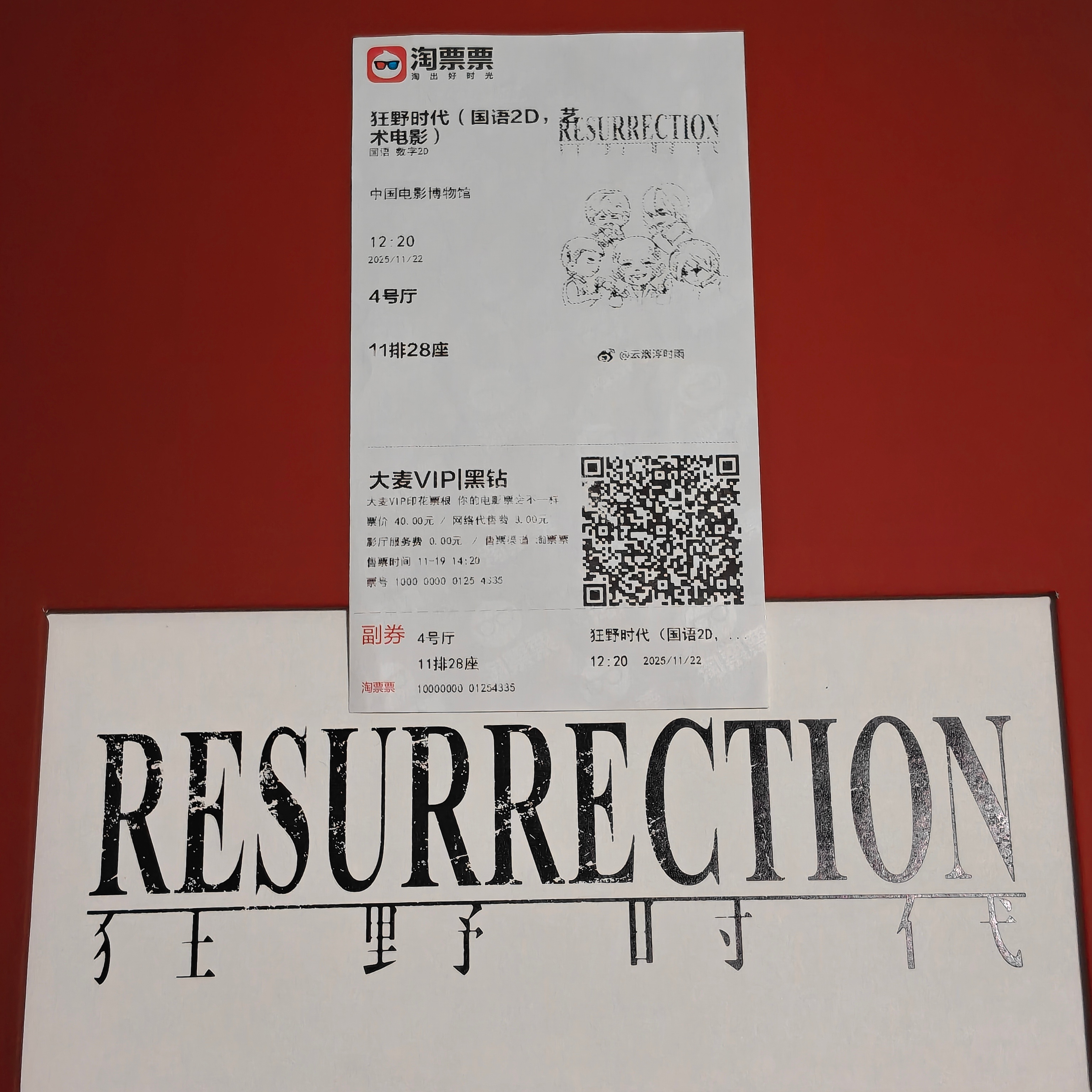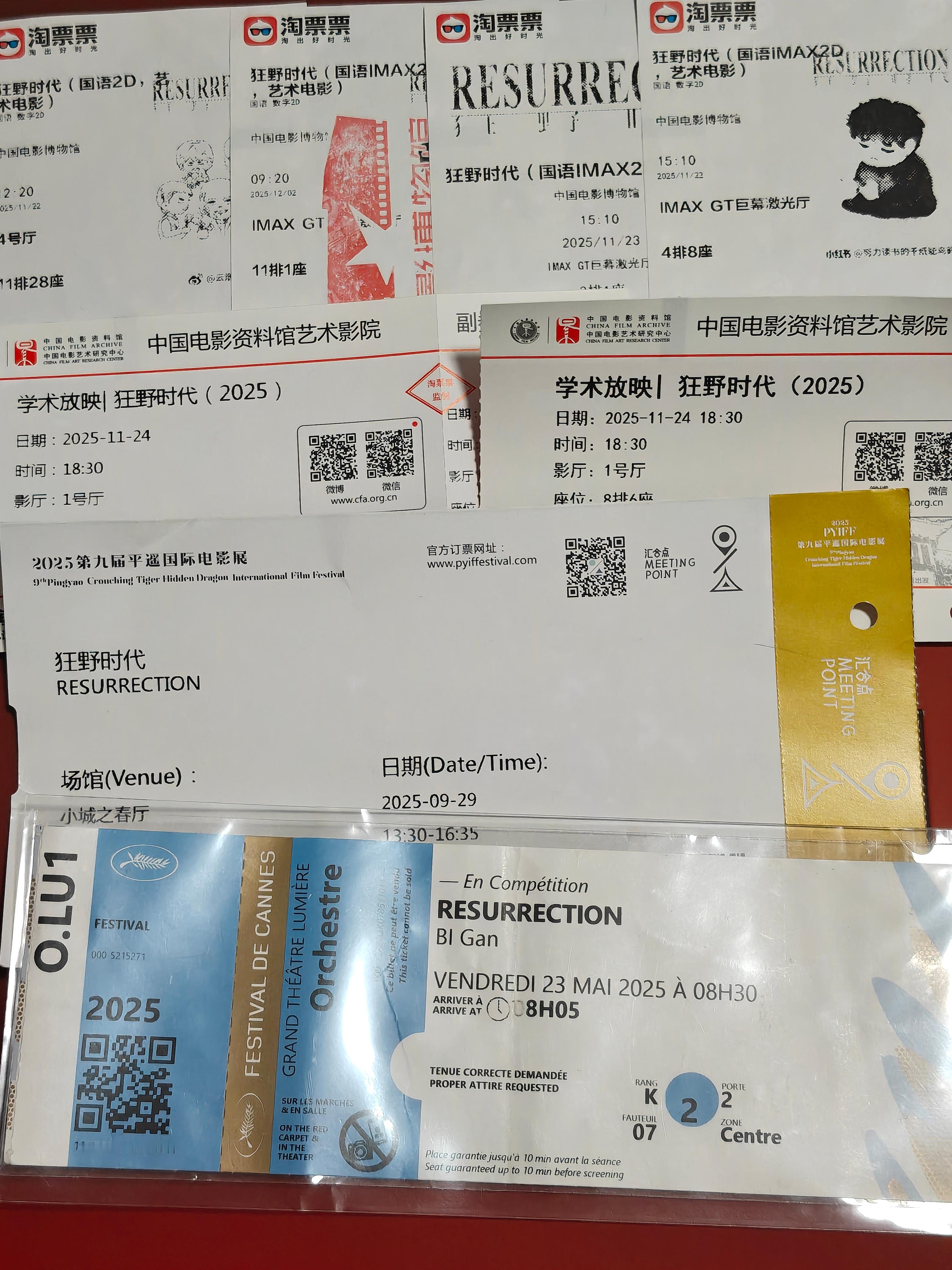 狂野时代特殊票根收集📚2025/05/23 戛纳电影节卢米埃尔厅✍🏻法国戛纳2025/11/24 中国电影资料馆艺术影院1号厅✍🏻中国北京2025/09/29 平遥国际影展小城之春厅✍🏻中国山西平遥2025/11/22—12/02 中国电影博物馆IMAX GT厅/4号厅 ✍🏻中国北京电影狂野时代