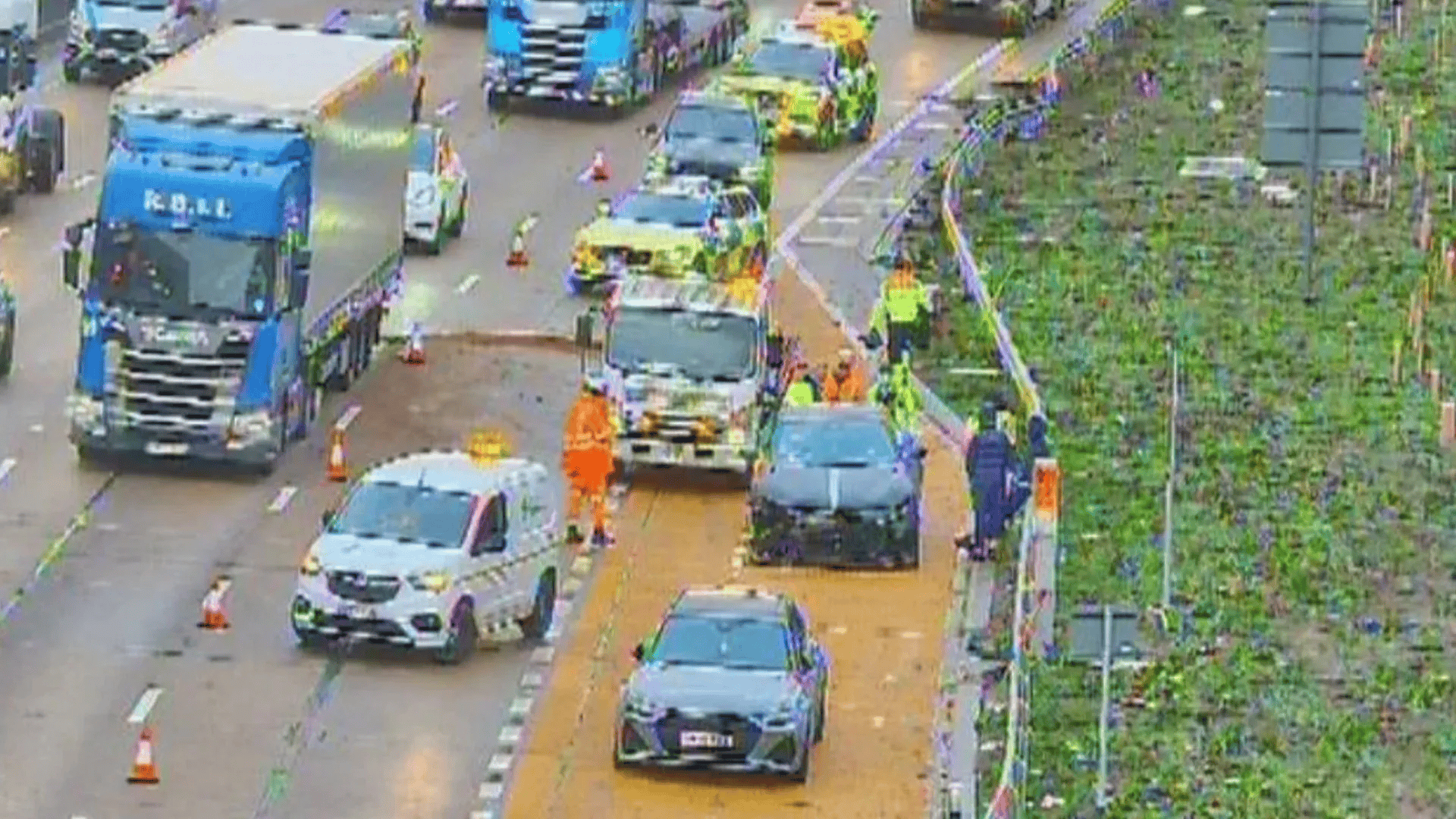 报道称,事故原因是球员驾车行驶过程中轮胎突然爆裂。现场画面显示,道路一度受阻,紧急救援人员赶到处理。两名球员及车辆停靠在应急车道内,一辆法拉利严重受损,车内安全气囊已经弹出。