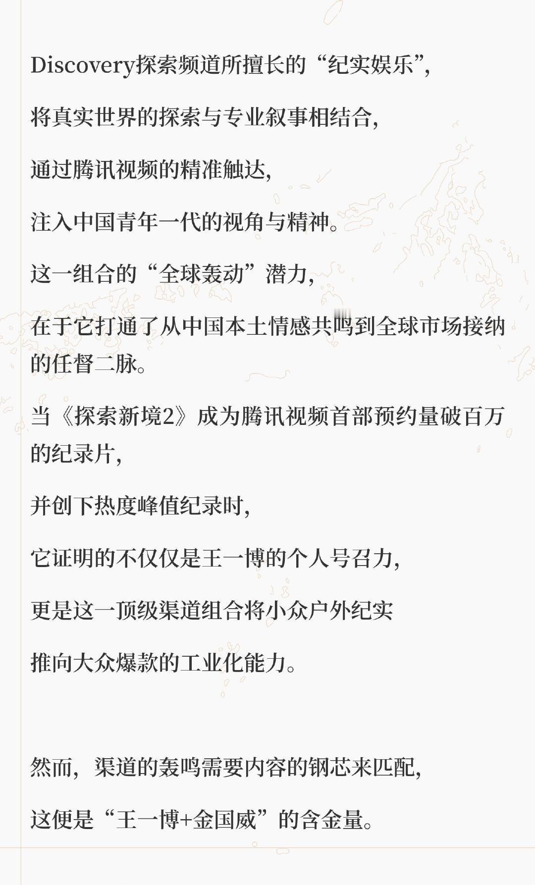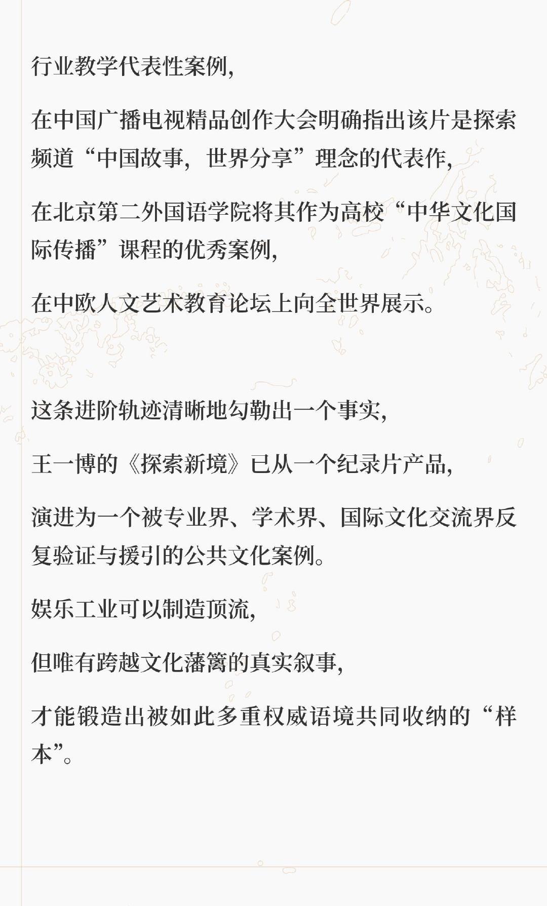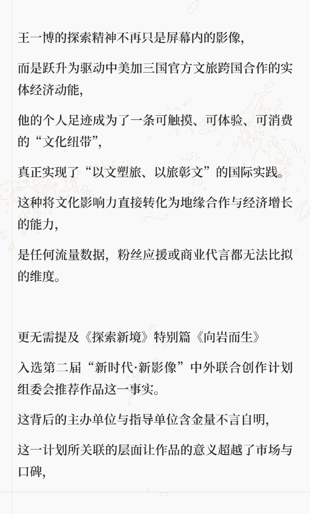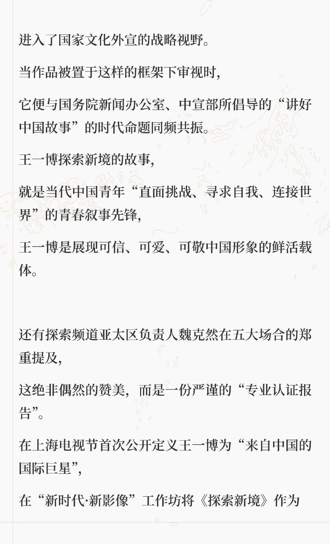 🍠上的一篇特别值得一读、总结的特别好的关于王一博纪录片《探索新境2》的宣传安利