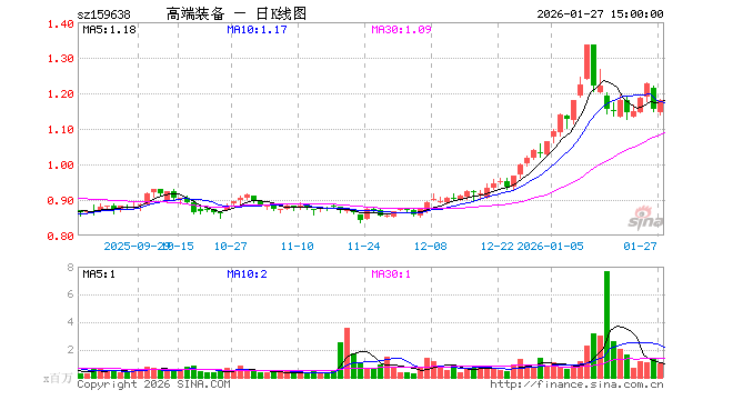 1月27日,高端装备ETF嘉实(159638)涨2.17%,成交额1.19亿元。当日份额增加3300.00万份,最新份额为15.97亿份,近20个交易日份额减少3.25亿份。最新资产净值计算值为18.81亿元。