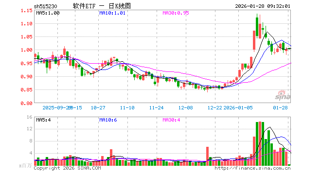 软件ETF(515230)业绩比较基准为中证全指软件指数收益率,管理人为国泰基金管理有限公司,基金经理为苗梦羽,成立(2021-02-03)以来回报为-0.01%,近一个月回报为14.27%。
