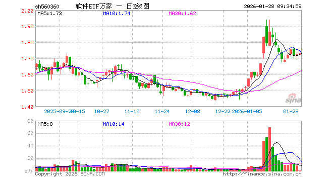 1月28日,软件ETF万家(560360)开盘跌0.17%,报1.720元。软件ETF万家(560360)重仓股方面,科大讯飞开盘涨0.60%,金山办公涨0.27%,同花顺涨0.62%,指南针涨0.27%,恒生电子涨0.03%,拓维信息涨0.48%,润和软件涨0.25%,三六零跌0.65%,软通动力涨0.12%。