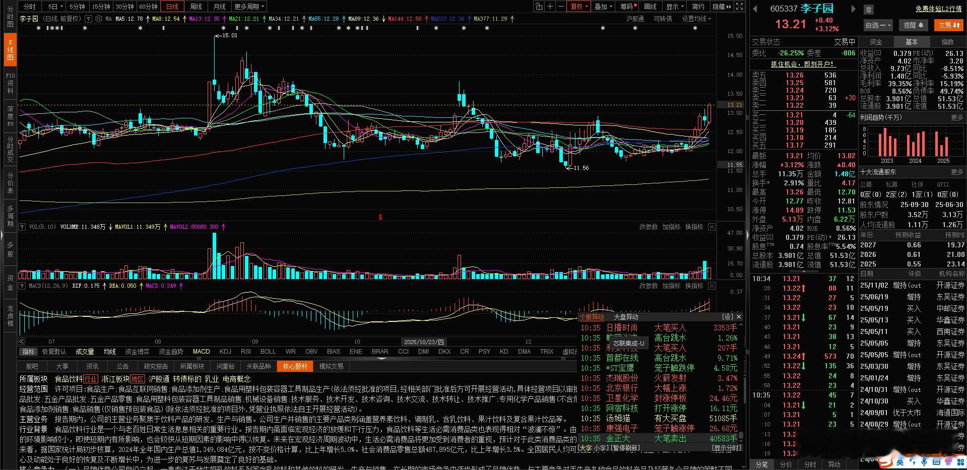 来来来,刚刚买入了$李子园 sh605337$ 大家自取冲之量形引擎