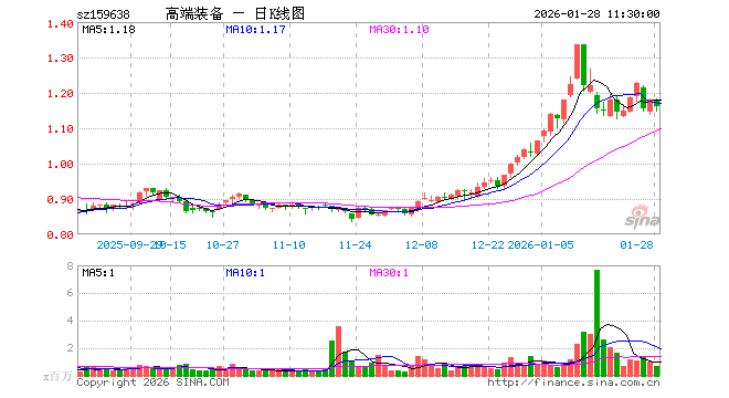 1月28日,截止午间收盘,高端装备ETF嘉实(159638)跌1.61%,报1.160元,成交额7558.10万元。高端装备ETF嘉实(159638)重仓股方面,航天电子截止午盘跌5.01%,中国卫星跌1.85%,航发动力跌2.00%,中航沈飞跌1.42%,中航光电跌0.89%,航天发展跌3.71%,菲利华涨2.57%,中航西飞跌0.13%,西部超导跌1.10%,中航机载跌0.91%。