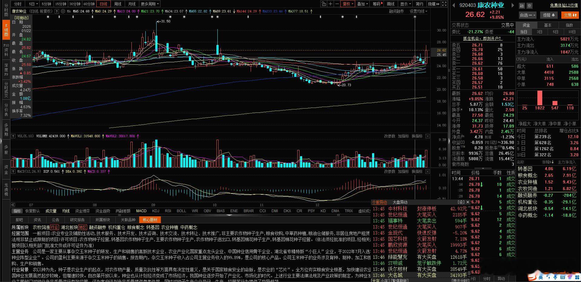 1月22日给到大家的 $康农种业 bj920403$ 有低吸的同学举个手,调整了3天,今天旱地拨葱了