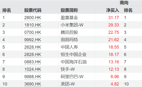 南向资金持续涌入港股。近七日以来,小米集团-W净买入超29亿港元位居第二,腾讯控股、快手-W、阿里巴巴-W、美团-W也均位居净买入榜前十。