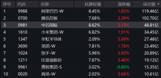 注:以上为恒生科技指数成分股,仅做展示,不作为个股推介。