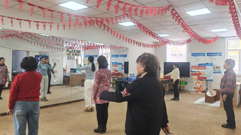 近日,长春汽开区东风街道迎春社区联合邻里之家养老服务中心开设老年民族舞蹈课。
