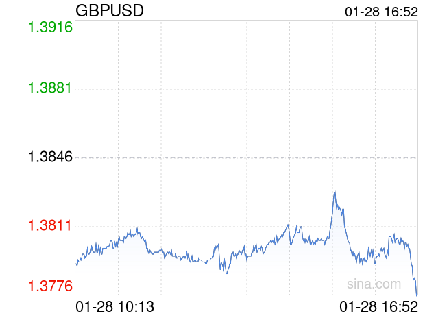 新浪外汇消息2026年01月28日,截至16时51分,外汇市场上英镑兑美元汇率跌破1英镑兑换1.3776美元。跌幅为-0.5056%
