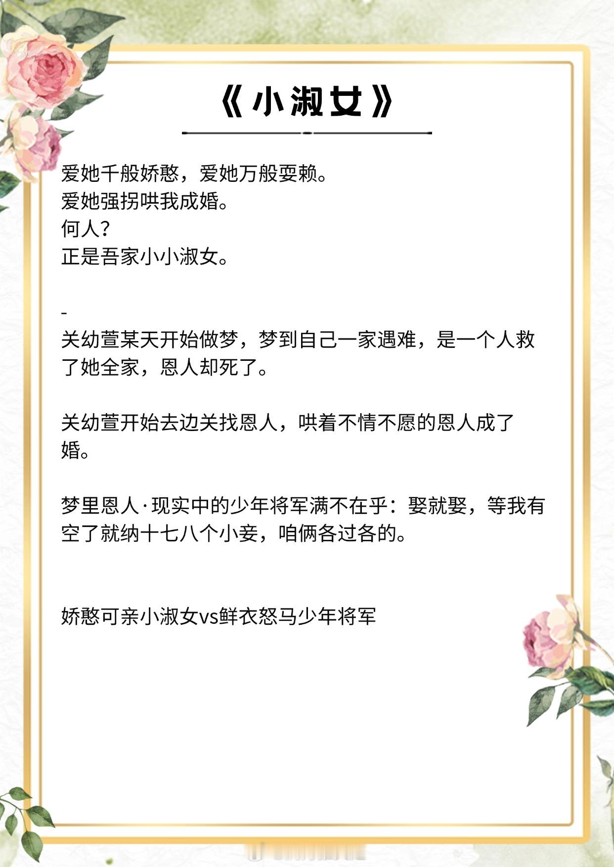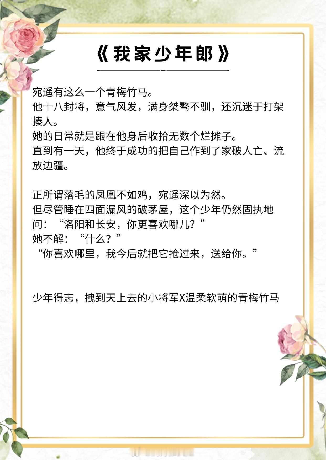 【古言少年夫妻文】爱她千般娇憨,爱她万般耍赖。《三十六陂春水》作者:衣冉《我夫君天下第一甜》作者:山栀子《小淑女》作者:伊人睽睽《我家少年郎》作者:赏饭罚饿《皇后是朕小青梅》作者:瞬息《雪满长安》作者:文成三百斤《公府佳媳》作者:江南梅萼《姜萱》作者:秀木成林《嫁给前朝小将军》作者:谢朝朝推文言情小说推荐推文