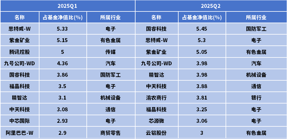 回顾董晗在管的景顺长城景气优选2025年以来的重仓持股,可以发现,他较好地实现了上述配置结果。一方面,组合对电子、军工、高端制造、有色和互联网平台等多个热门行业均有阶段性配置,较好地抓住了这一轮行情主线;另一方面,根据公开数据显示,前十大权重股权重合计保持在40%左右,有效降低个股集中度过高的波动风险。