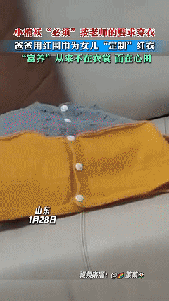 这样的家长最帅了,近日山东,母亲让女儿赶紧穿衣服准备上学,可女儿却不愿意穿表示老师说了要穿红色的衣服,妈妈一下就犯了难,之前可一直没买过红色衣服,这时爸爸走了过来拿出红围巾,用围巾给女儿做了一件独一无二的红衣服。 今天学校有活动,老师通知今天尽量穿红色衣服,没有的话也可以不穿,因为家里没有红色衣服妈妈就打算让女儿穿件好看的衣服去就行,可快要出门时女儿怎么也不愿意穿衣服,跟妈妈强调,老师说了要穿红衣服,此时妈妈也犯了难,正准备教育女儿要乖乖听话时,孩子爸爸走了过来,了解到事情的经过后,表示既然女儿想要说什么也要让女儿穿上。 可爸爸没有带女儿出去买,而是从衣柜中翻出一件红围巾把女儿的肚子围住,将两头向上从腋下交替穿过来到胸前,最后再用发夹夹住,这样一件红围巾就改成了一件红色的小礼服,女儿见到自己有了红色衣服,高兴的的止不住笑,跟妈妈摆了摆手就跟着爸爸上学去了。 而爸爸耐心给女儿定制红衣的一幕,也深深打动了妈妈,没想到一向大大咧咧的丈夫,今天也能有这么细腻的一天,让出现困难时没有指责或推诿,而是用自己的能力去解决。 妈妈将经历发到网上后,也迅速引起了不少家长的共鸣。 有的网友说:这才是正确的解决办法,而不是把孩子哭发到网上,问网友,没书怎么办。 还有的网友说:这个爸爸有解决问题的能力,已经超越了百分之九十的爸爸。 也有的网友说:为什么不早让我刷到,我家也是这个情况,我晚上八点出去买的。 就像网友说的,一个人最大的能力不是能赚多少钱,而是当问题出现在面前时能不能稳定住情绪去解决,就像这位爸爸一样,当女儿出现困难时,会耐心的倾听,会用聪明去解决,这份稳定的情绪和愿意解决问题的态度,就是在孩子成长道路上最大的保障。 你怎么看?评论区说说吧。