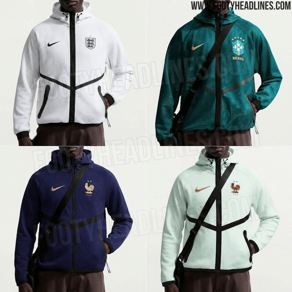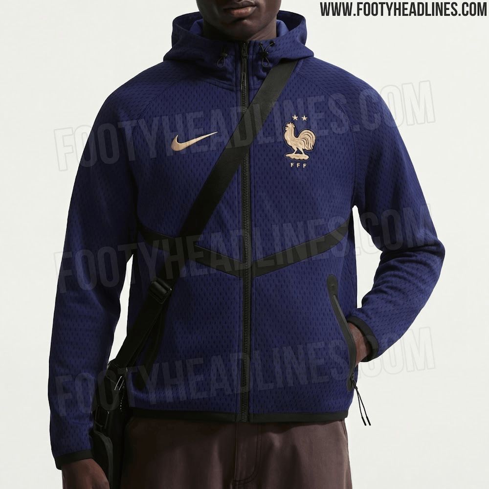 虎扑01月28日讯FootyHeadlines独家曝光了耐克设计的法国队2026年世界杯网眼夹克的首批实物图片。这些单品将成为法国队今夏在北美征战世界杯时所穿的训练服。
