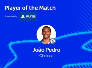 直播吧1月29日讯欧冠联赛阶段第8轮,切尔西3-2战胜那不勒斯。若昂·佩德罗首发出战,贡献双响,赛后被评为全场最佳球员。