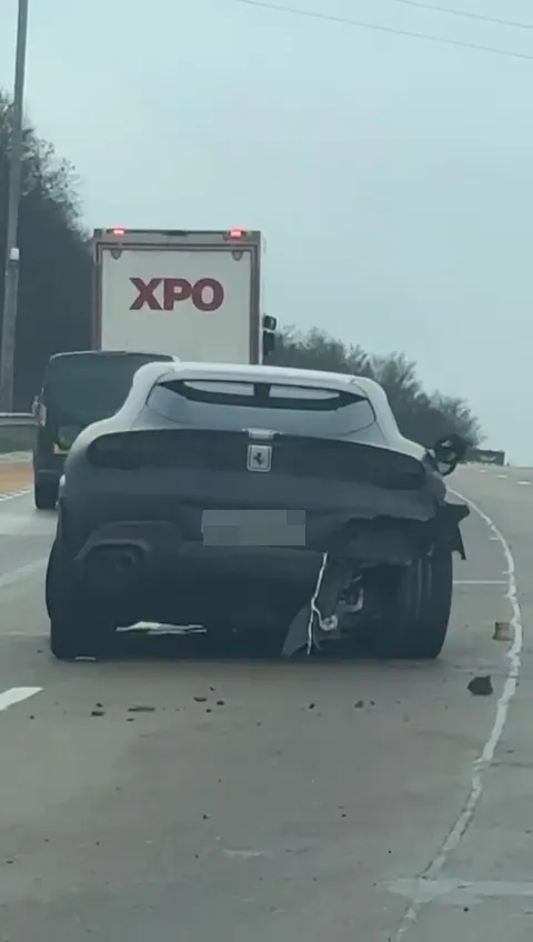 一位目击者向《太阳报》讲述了事发经过:“车祸发生时,我就在后方约一分钟车程的位置。事发前车流速度本就不快,大概每小时40英里。我摇下车窗的瞬间,突然听到三声巨响,紧接着车流彻底慢了下来。我看到路面上的轮胎,接着驾车从那辆法拉利旁驶过,车内安全气囊已经弹出,车窗布满雾气,根本看不到车内情况,看着像是车子撞到了护栏,车尾部分也撞脱落了。”