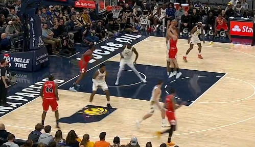 比赛的第一节,赫尔特禁区内强行中投命中,公牛领先步行者到10分分差。
