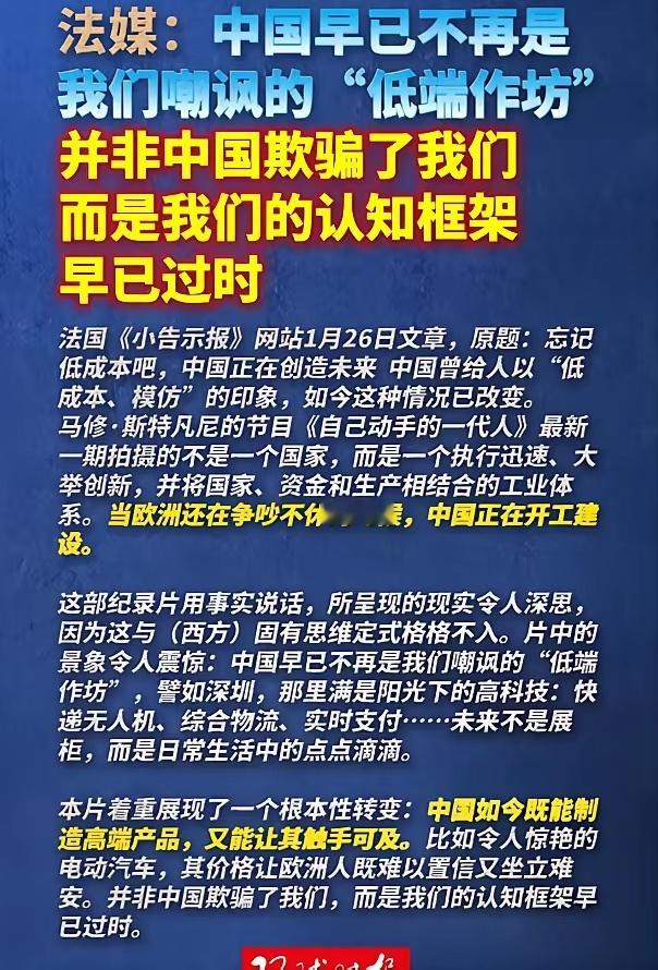 法媒:中国早已不再是我们嘲讽的低端作坊,并非中国欺骗了我们,而是我们的认知框架早已过时。