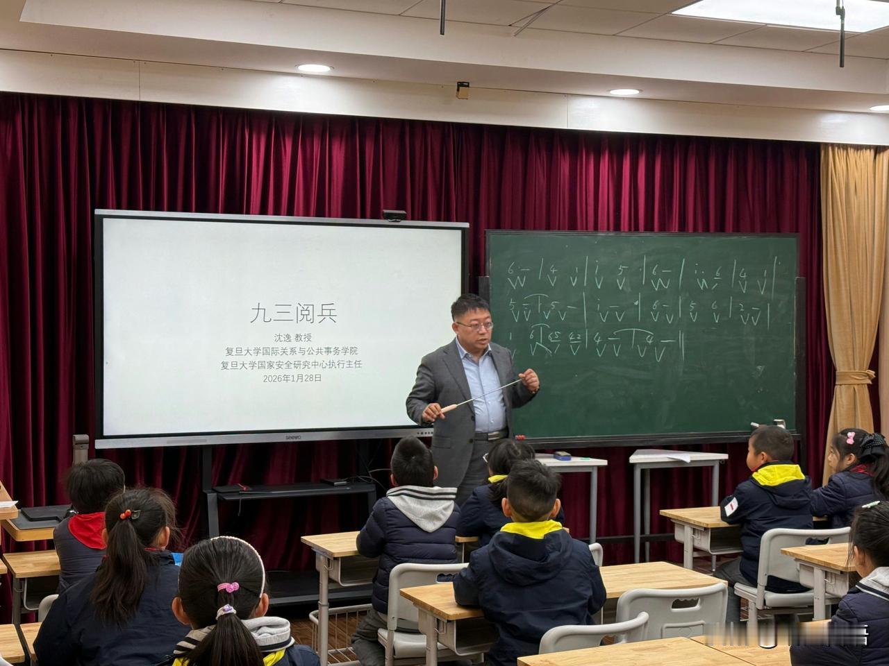 沈逸老师又开始忙碌起来,为祖国的花朵做班级大讲堂。小同学们个个听得津津有味,而且基本都能理解,尤其是男孩子,更是兴致盎然。这种对课外知识的正确引导和价值观的正向传递,最值得称赞,远比一窝蜂地去上兴趣班有用得多。 其实孩子们也乐意探讨飞机、坦克、航空母舰这类话题,我小时候便是如此。 最后,孩子们一致称赞沈逸老师:“您的学问就像肚子一样突出!” 沈逸老师得到了同学们和班主任的认可,这或许比在国际大讲堂演讲更有成就感。 为沈逸老师点赞!