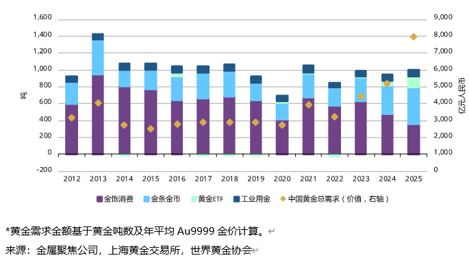 世界黄金协会:2025年全年中国黄金需求总量达1003吨 为2021年以来最高水平
