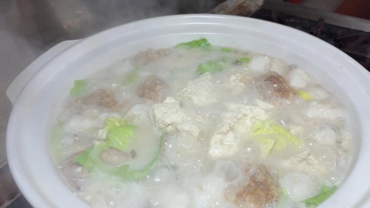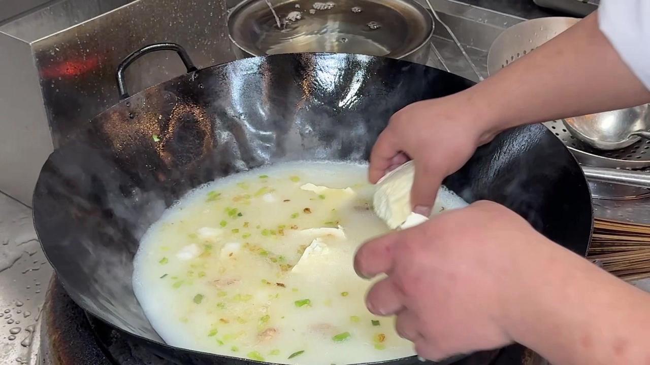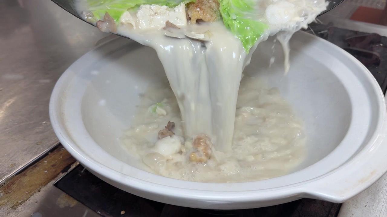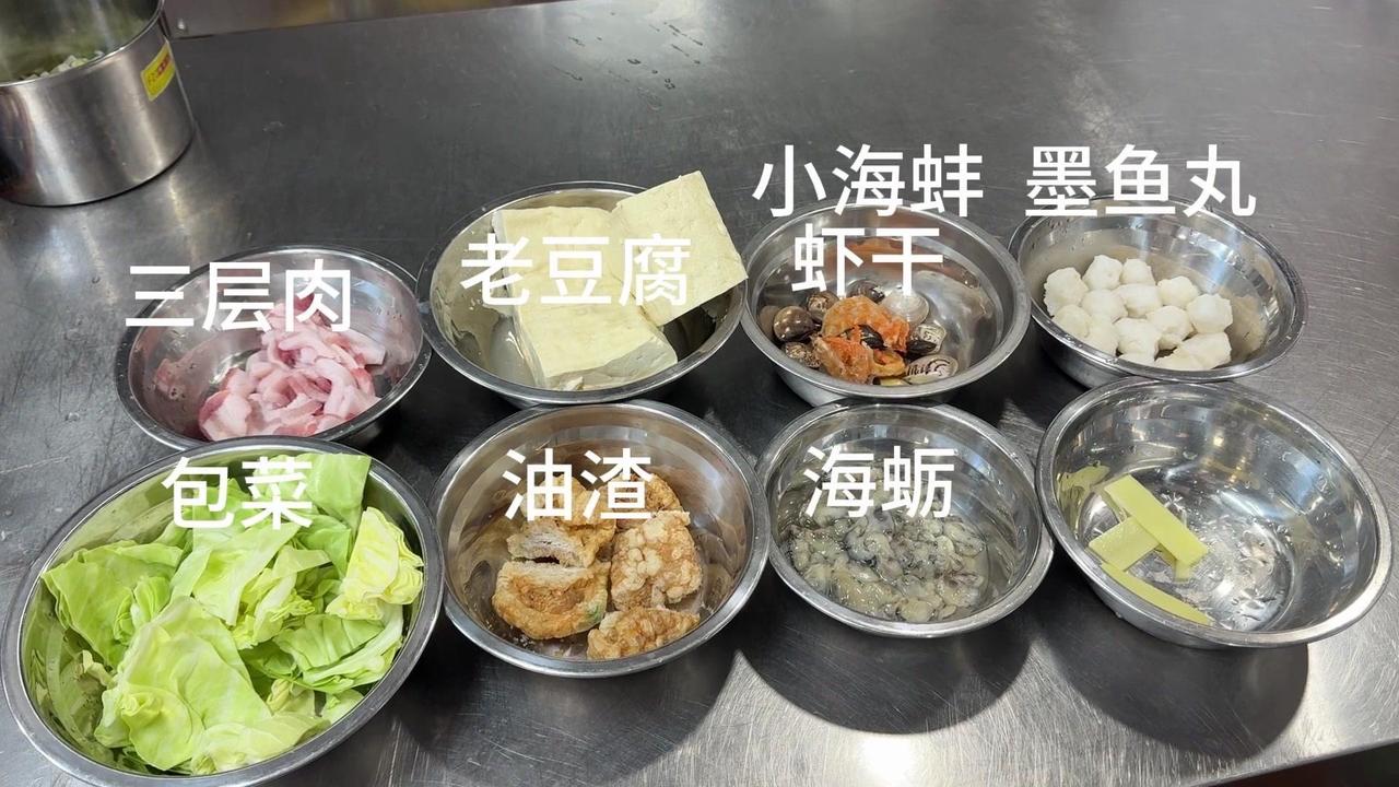 闽南人年夜饭怎么能少了豆腐?这款豆腐料理我愿称之为“饭渣杀手”! 先准备好食材:空豆腐切块,三层肉煸干,下葱白姜片爆香。接着加入骨汤,放入小海蚌、虾干、墨鱼丸,加味精、鸡粉、盐、鸡汁调味,再倒少许海蚌汤,炖至汤汁奶白。 最后放入油渣、海蛎和包菜,煮到食材熟透就可以出锅啦!嫩滑的豆腐吸饱了海鲜的鲜味,一口下去满嘴都是幸福感~