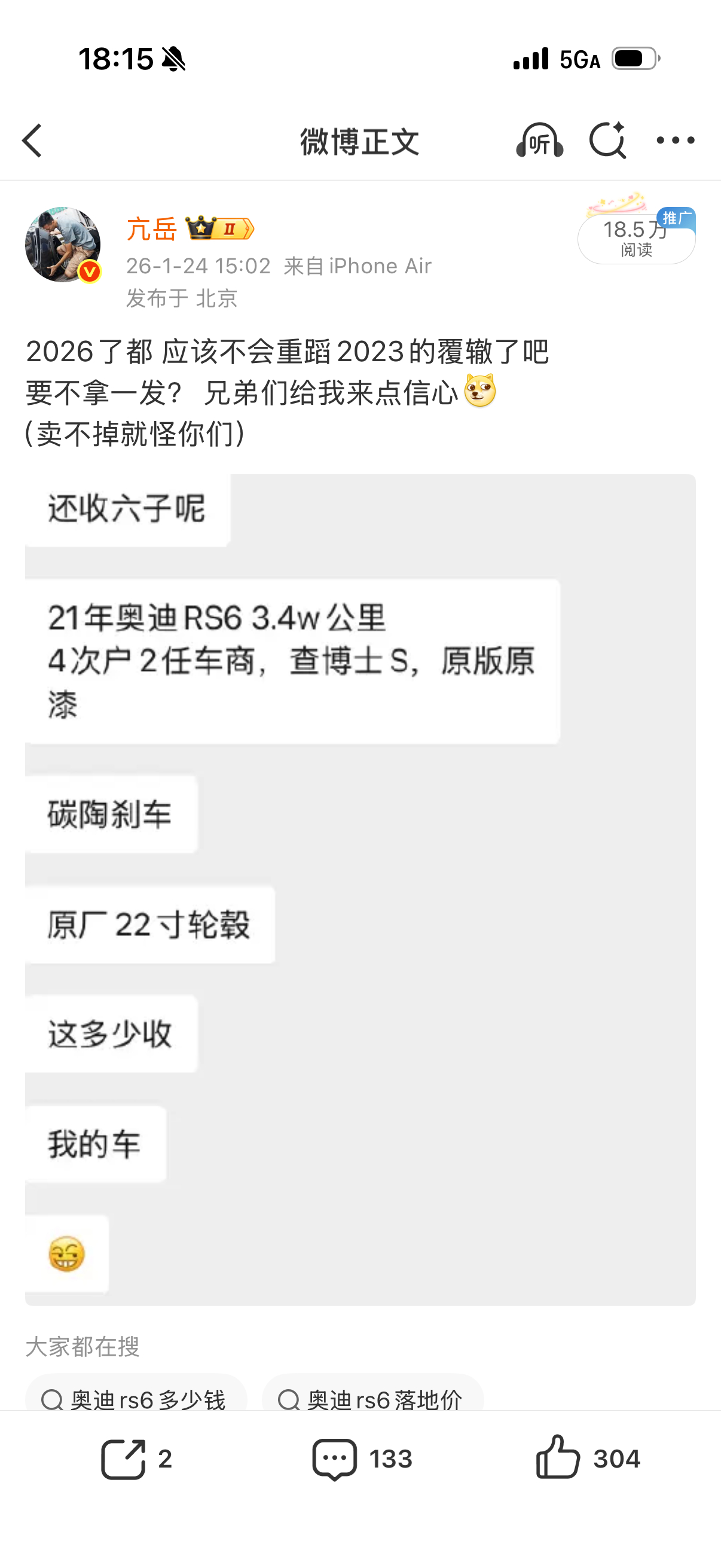 你们还记得我前两天说那rs6吗听兄弟们的 拿下了 来吧 别放我鸽子