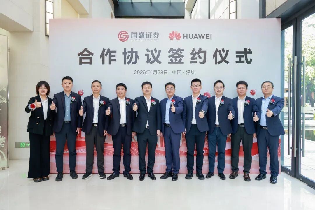 [中国,深圳,2026年1月28日]国盛证券股份有限公司(以下简称“国盛证券”)与华为技术有限公司(以下简称“华为”)在华为总部深圳坂田基地正式签署合作协议,双方将聚焦证券行业数字化转型核心需求,在核心交易系统升级、智能化场景创新、ICT基础设施建设、人才联合培养、业务生态共建等领域展开全方位深度合作,秉持“优势互补、互惠互利、共同发展”的原则,携手打造证券行业数智化转型新标杆。