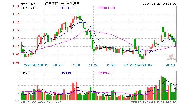1月29日,绿电ETF(159669)跌0.27%,成交额381.25万元。当日份额减少50.00万份,最新份额为1.26亿份,近20个交易日份额增加3600.00万份。最新资产净值计算值为1.40亿元。
