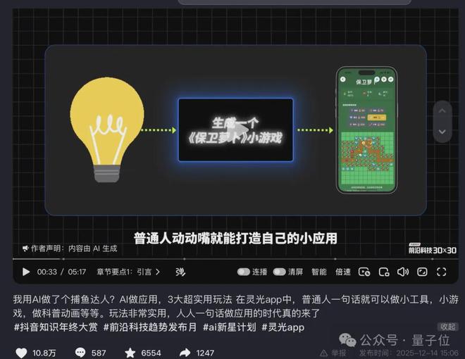 “Xuan酱”的视频,细致展示了如何通过灵光一句话生成一个小应用、小游戏(看完我又行了)……