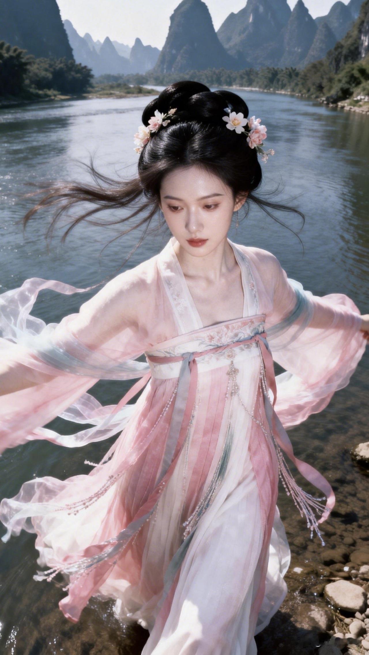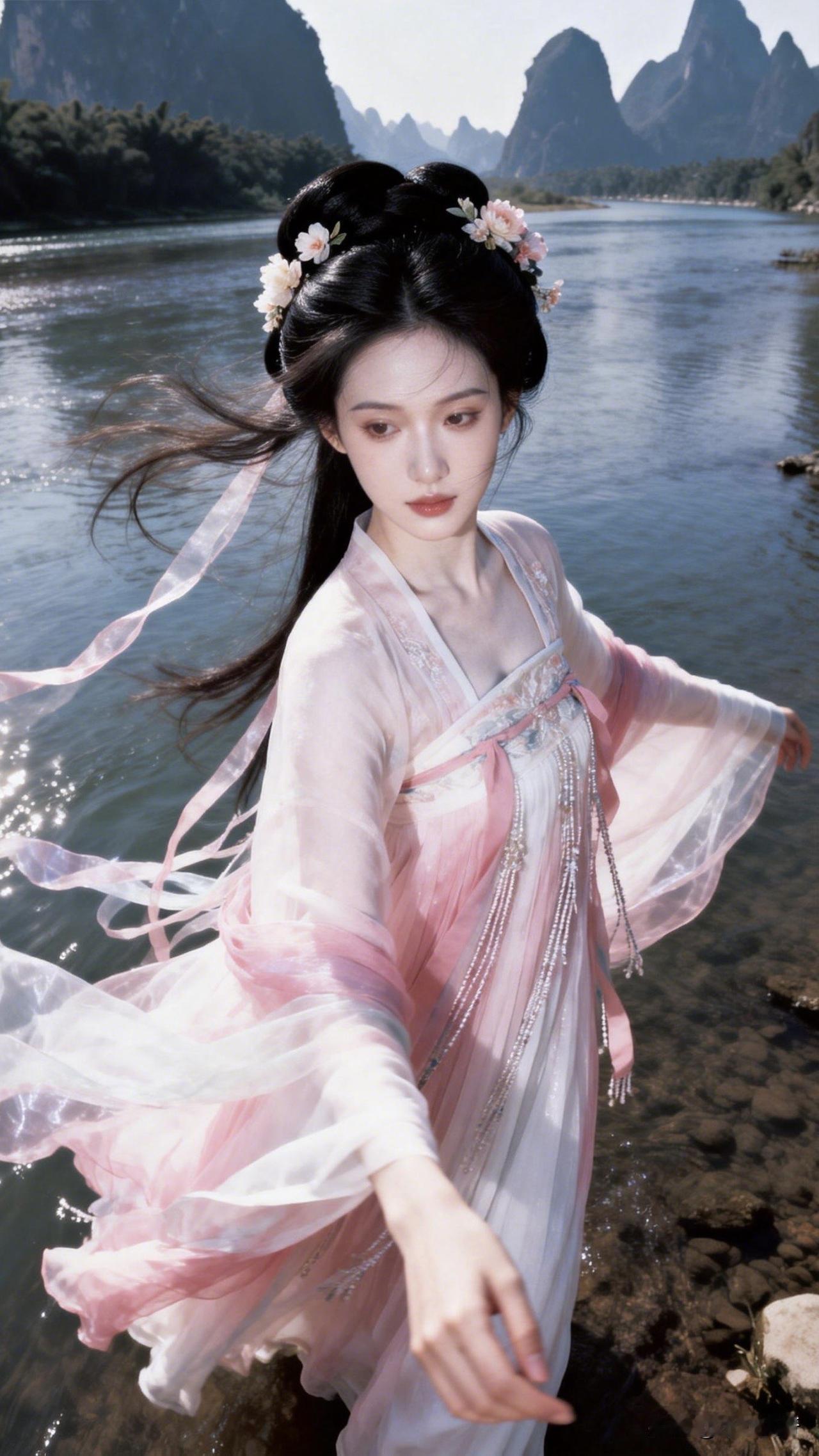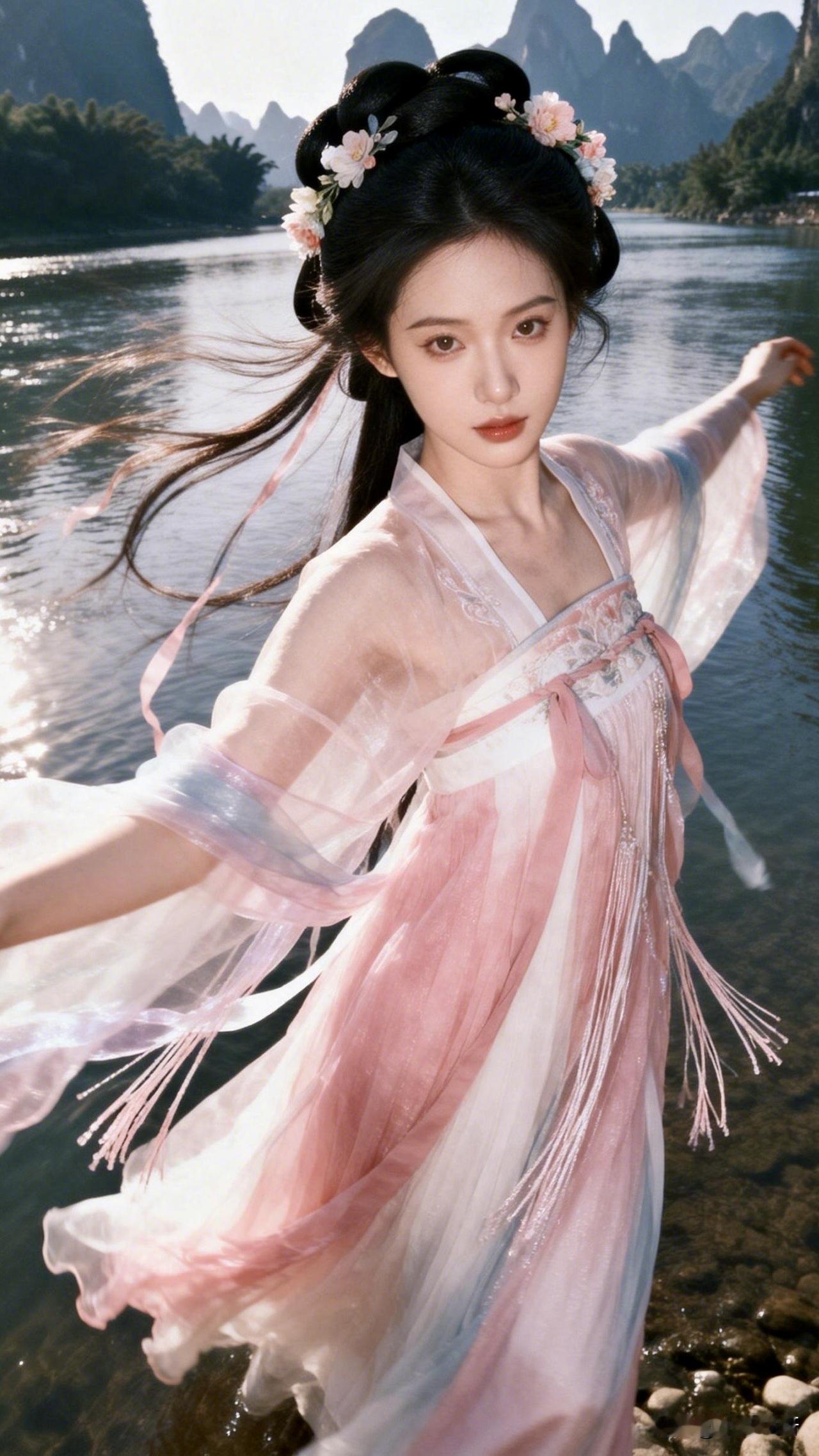:此情此景,我又想吟诗一首:[可爱] “青山绿水映蓝天,仙女翩跹落此间;云鬓飘飘风作伴,恰似桃源画里仙。”[玫瑰]