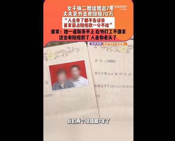 真是咄咄怪事! 河南洛阳刘女士与二婚丈夫结婚 7 年,丈夫去年 11 月工地心梗意外去世,其竟被婆家刻意隐瞒死讯,70 万赔偿款也被公婆、小姑子私自领走霸占。 刘女士讨要赔偿时,婆家强硬斥责其多年未回家、户口早迁走,称其失联不闻不问,如今见钱眼开才回来闹事。 丈夫意外离世,70 万赔偿款被婆家私吞,甚至连死讯都刻意隐瞒,这桩荒唐事撕开了再婚家庭亲情的虚伪面纱,更暴露了部分家庭在利益面前的冷血与蛮横,既寒透了人心,也公然触碰法律红线,实在令人怒不可遏! 从情感层面来说,七年夫妻情分,纵使二人常年在外打工聚少离多,也绝不是丈夫离世后,刘女士被婆家彻底隔绝、连丧夫之痛都要被剥夺的理由。 婆家一句句强硬斥责,“你这么多年回过家吗?进过门吗?”“联系得上你吗?”,字字句句充满嫌弃与苛责,更直言刘女士 “户口都迁走了,人死了赔钱了你想要钱才回来闹”,全然抹去她的妻子身份,无视她的悲痛,满心满眼只有赔偿款的归属,将血脉亲情凌驾于七年夫妻情义之上,把钱财看得比人情重千倍。 这般凉薄的心思,这般强硬的嘴脸,让婚姻的意义变得无比廉价,也让人性的贪婪暴露无遗。 在社会关系里,这起事件更折射出再婚家庭的深层隔阂与极致的利益算计。 自始至终都将刘女士视为外人,即便七年婚姻,也从未真正接纳她,丈夫去世后,第一时间想到的不是通知家属、料理后事,而是联手霸占赔偿款,用最强硬的话语将刘女士的合理诉求污蔑为 “见钱眼开的闹事”。 狭隘又自私的家族观念,不仅彻底撕裂了家庭关系,更公然违背公序良俗。 在他们眼中,婚姻只是一场无关紧要的形式,唯有血缘才是 “自己人” 的唯一凭证,可殊不知,七年的朝夕相伴、合法的婚姻关系,早已超越形式上的联结,成为实打实的亲情与法律羁绊,婆家的所作所为,不仅寒了刘女士的心,更让旁人看清了其唯利是图、毫无底线的嘴脸。 更重要的是,婆家再强硬的斥责、再蛮横的借口,在法律面前都不堪一击,其行为绝非简单的家庭矛盾,而是赤裸裸的违法行径。 根据《民法典》规定,配偶、子女、父母是法定第一顺位继承人,刘女士作为丈夫的合法妻子,即便户口迁走、常年在外打工,也依法享有对丈夫赔偿款的继承权,婆家无权擅自隐瞒死讯、私自领走并霸占赔偿款。 在这件事上,死亡赔偿金、精神损害抚慰金虽非遗产,但参照法定继承分配,配偶(刘女士)、父母(公婆)为第一顺序权利人,原则上均等分割(无子女时,刘女士至少分得 1/3);被扶养人生活费归专属被扶养人,丧葬费优先用于丧葬,剩余按上述原则分。 丈夫去世、赔偿协商、领款等事项,刘女士有权知情并参与;婆家隐瞒死讯、谎称 “光棍”、小姑子代领,侵犯其知情权与处分权,相关领款 / 赔偿协议可主张无效。 还有财产返还与追偿权:婆家无权单独占有全部赔偿款,构成不当得利,刘女士有权要求返还应得份额;若婆家虚构事实、伪造材料骗取赔偿款,情节严重的,可追究其诈骗罪刑事责任。 遗产继承权:丈夫生前个人财产(存款、房产等),先分割夫妻共同财产(刘女士先分一半),剩余一半由刘女士、公婆均等继承。 当然,婆家所言的 “没回家、联系不上”,根本不能成为剥夺其合法权益的理由,更何况婆家刻意隐瞒死讯、私吞赔偿款的行为,本身就涉嫌侵犯刘女士的继承权。 赔偿款是对死者所有近亲属的精神慰藉和生活补偿,并非婆家的 “私人财产”,岂能凭血缘独吞,还用强硬话语倒打一耙,污蔑讨要公道的刘女士是 “闹事”? 婆家自以为靠着家族抱团、强硬斥责就能霸占钱财,却不知其行为早已触犯法律,等待他们的不仅是社会大众的道德谴责,更是法律的严厉制裁。