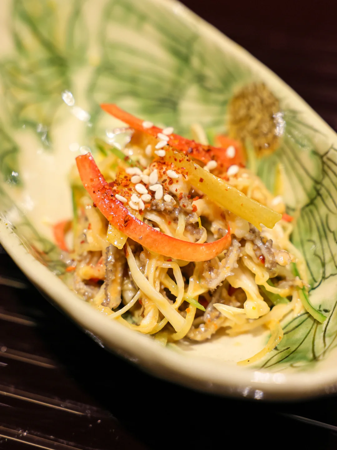 这次的沙拉用麻将调味,更凸显牛肚的清脆。