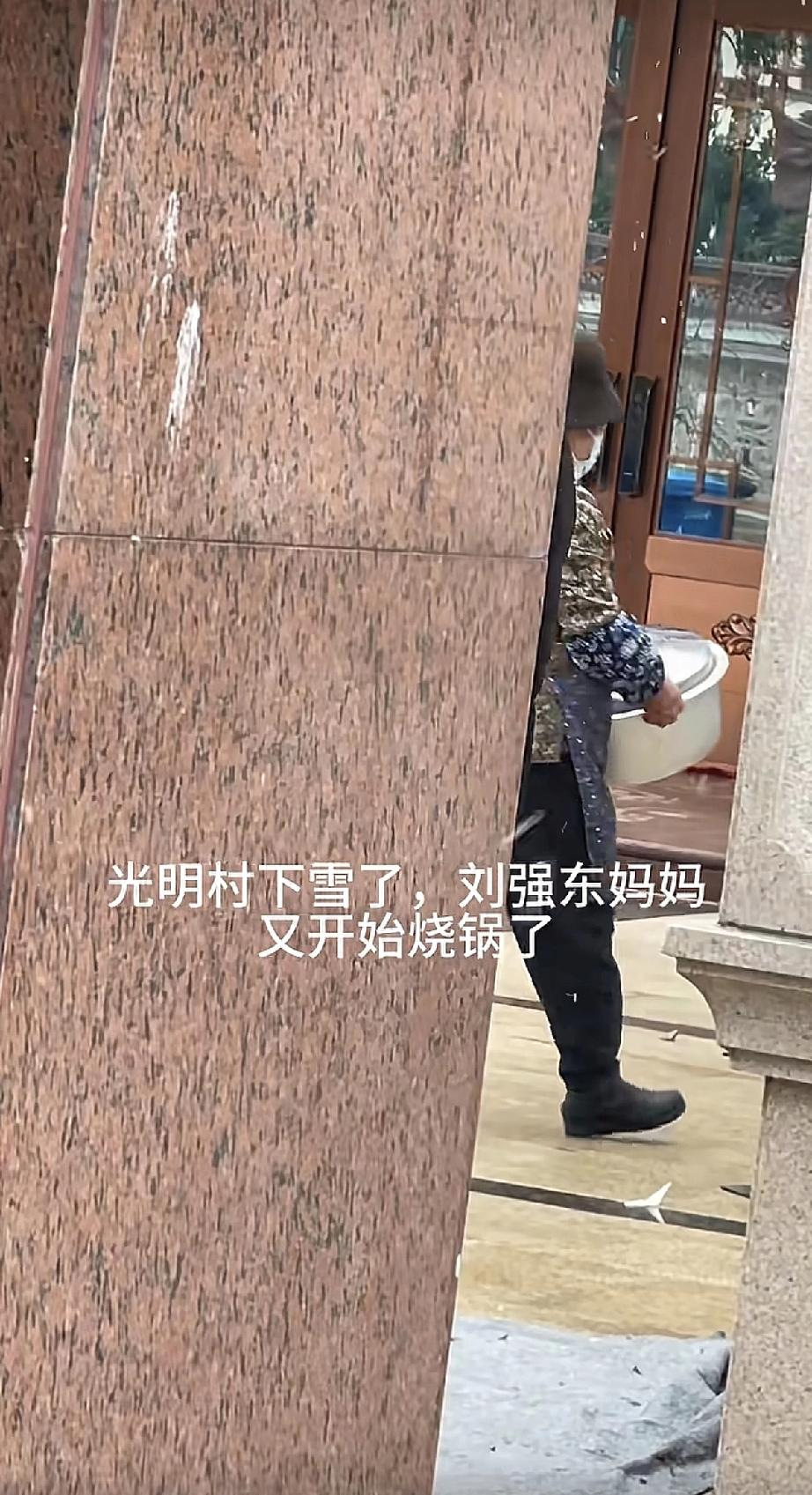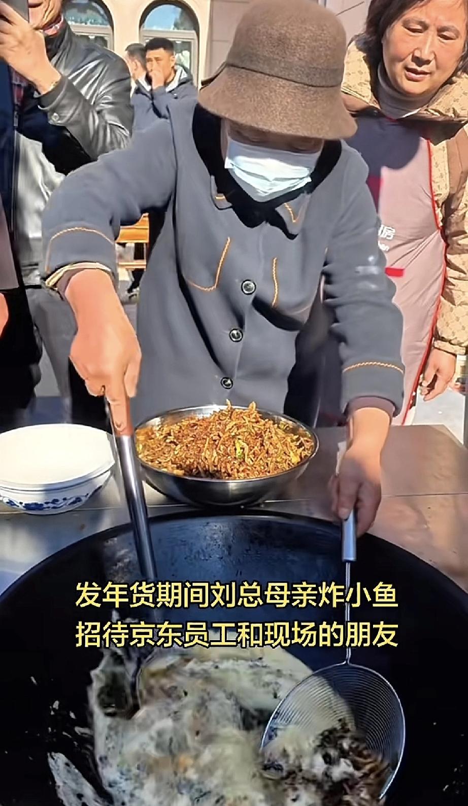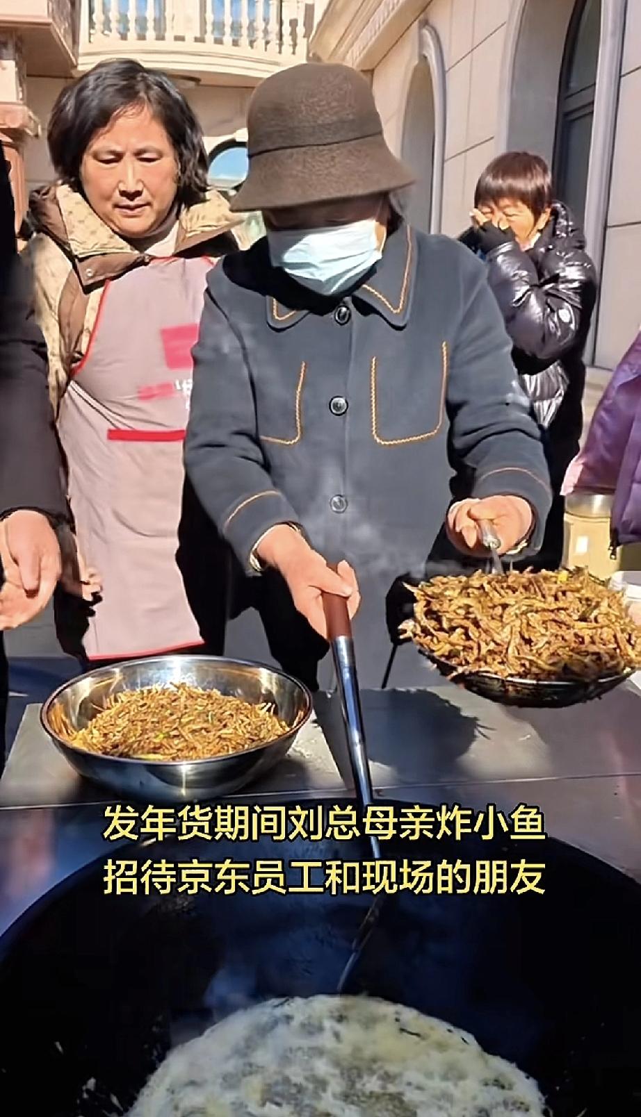 刘强东的母亲让人泪目,是千千万万朴素农民中的典型代表,只对别人好,不求回报! 1月30日,刘强东给老家宿迁光明村发放物资的活动接近尾声了,这几天天气也不好,下起了雪,很冷很阴。 刘强东76岁的母亲却没有休息,依然在忙碌着,也在自家别墅院子里架了锅,用柴火做饭,招待京东的员工。 刘强东的母亲和刘强东的大舅一起,在院子里忙前忙后,也没见人过来帮忙,估计是大家都忙着在外面领物资发物资,没时间过来。 还有就是,刘强东的母亲本身就是做饭的,她现在在京东的食堂卖饺子卖面食,她做的饭更好吃一些,别人做不出她的口味,而且她要做的是宿迁本地的美食。 于是可以看到,宿迁当天下了雪,冷成那样,刘强东的母亲都光着手来回跑来跑去做饭洗锅,一点都不喊累。 最主要的是,刘强东的母亲对人很好,她炸了满满的一大锅小黄鱼,据说也是宿迁的当地特产,招待那些网友,还有京东的员工。 刘强东的母亲真是天下千千万万普通农民的代表之一,一心一意对别人好,只想把自己最好的给到别人,从来没想过回报。 作为总裁母亲,她本来可以安度晚年,但却没有,还继续工作,把最朴实的一面展现给大家,真让人泪目!