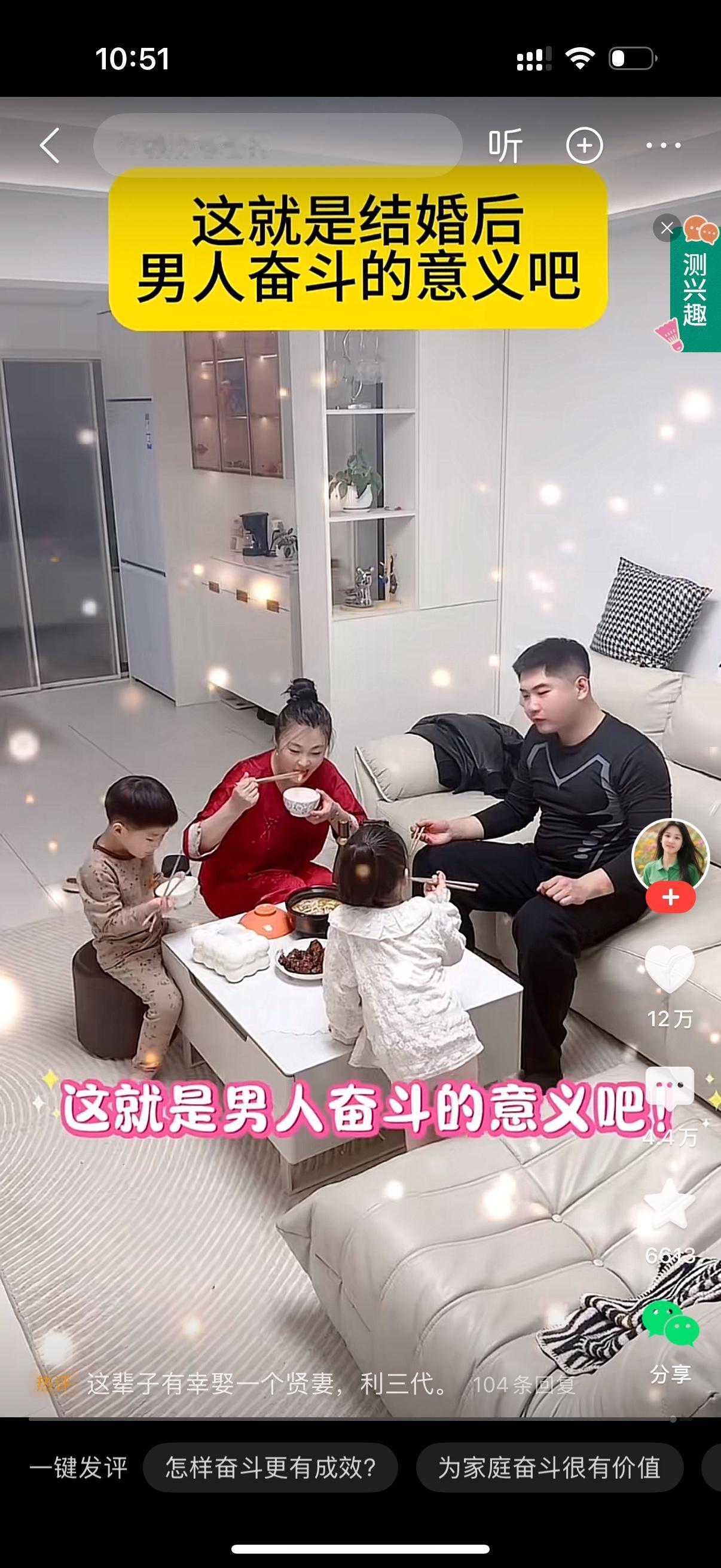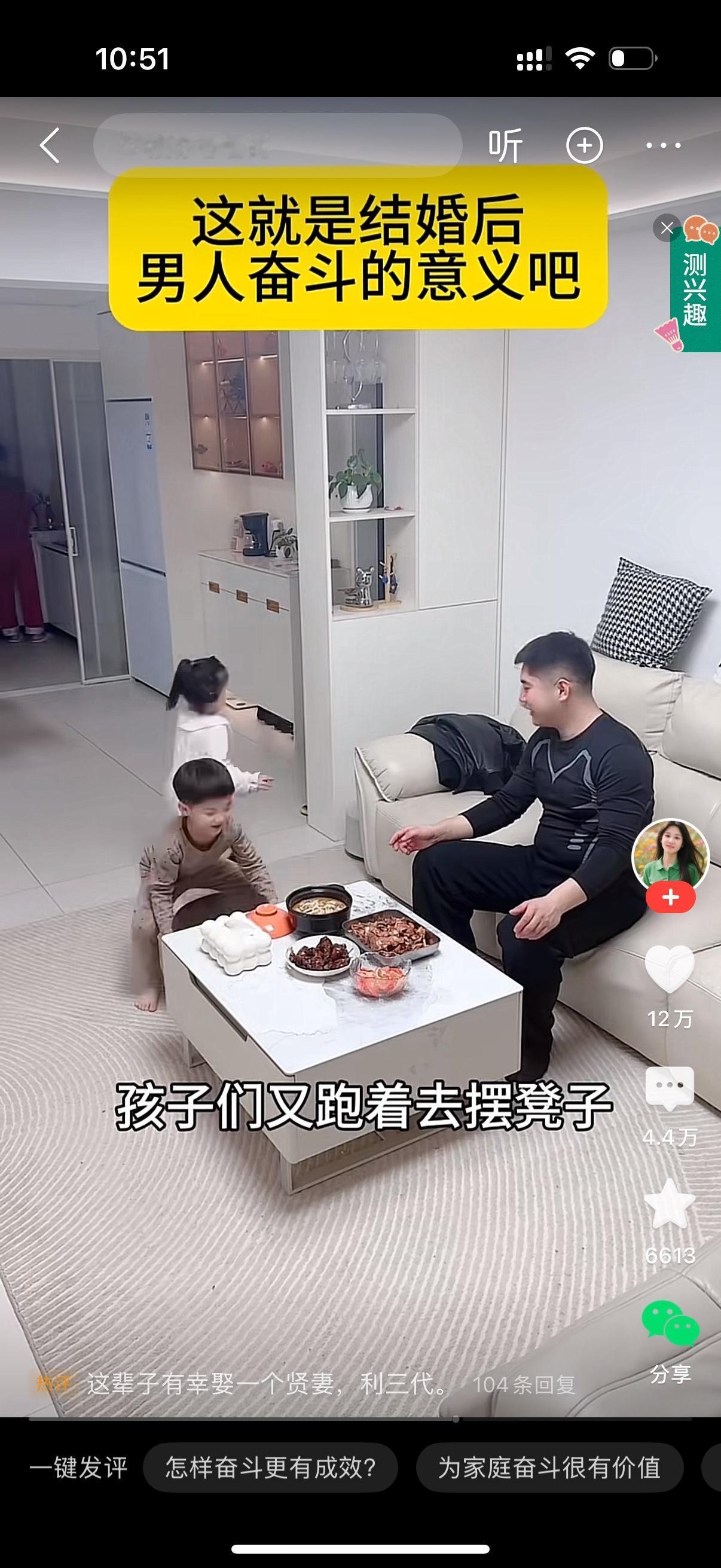 男人工作晚归略显疲惫。他坐在沙发上闭目养神了一会。男人以为家人都休息了,顺手捡起桌上吃剩的月饼吃了起来。儿子听到声音出来看看,大喊,爸爸,爸爸回来啦。女儿也跑了出来。家里瞬间热闹起来。妻子看到丈夫在吃月饼,立马抢过来,接着转身进了厨房,孩子们也进去帮忙。母子三人把热乎的饭菜端上来,孩子们又跑着去摆凳子。一家人坐下来一起吃饭。人间烟火不过一日三餐。有家回,有人等,有热乎的饭吃,再苦再累都值了。这就是男人奋斗的意义吧。