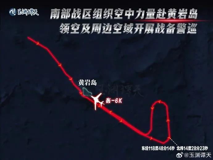 南部战区组织军机穿越菲划设区域,体现了中方对黄岩岛领海领空的实际管辖,菲方划设演习区域非法无效。