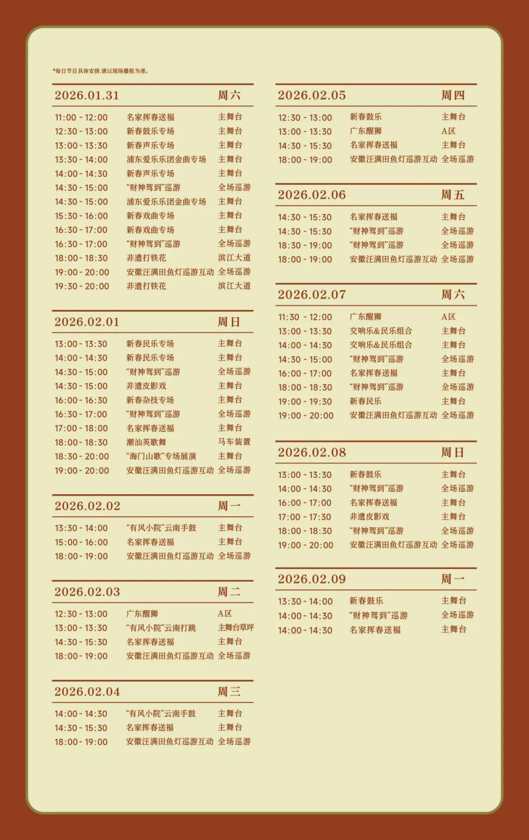 首届浦东中国年味节演出时间表
